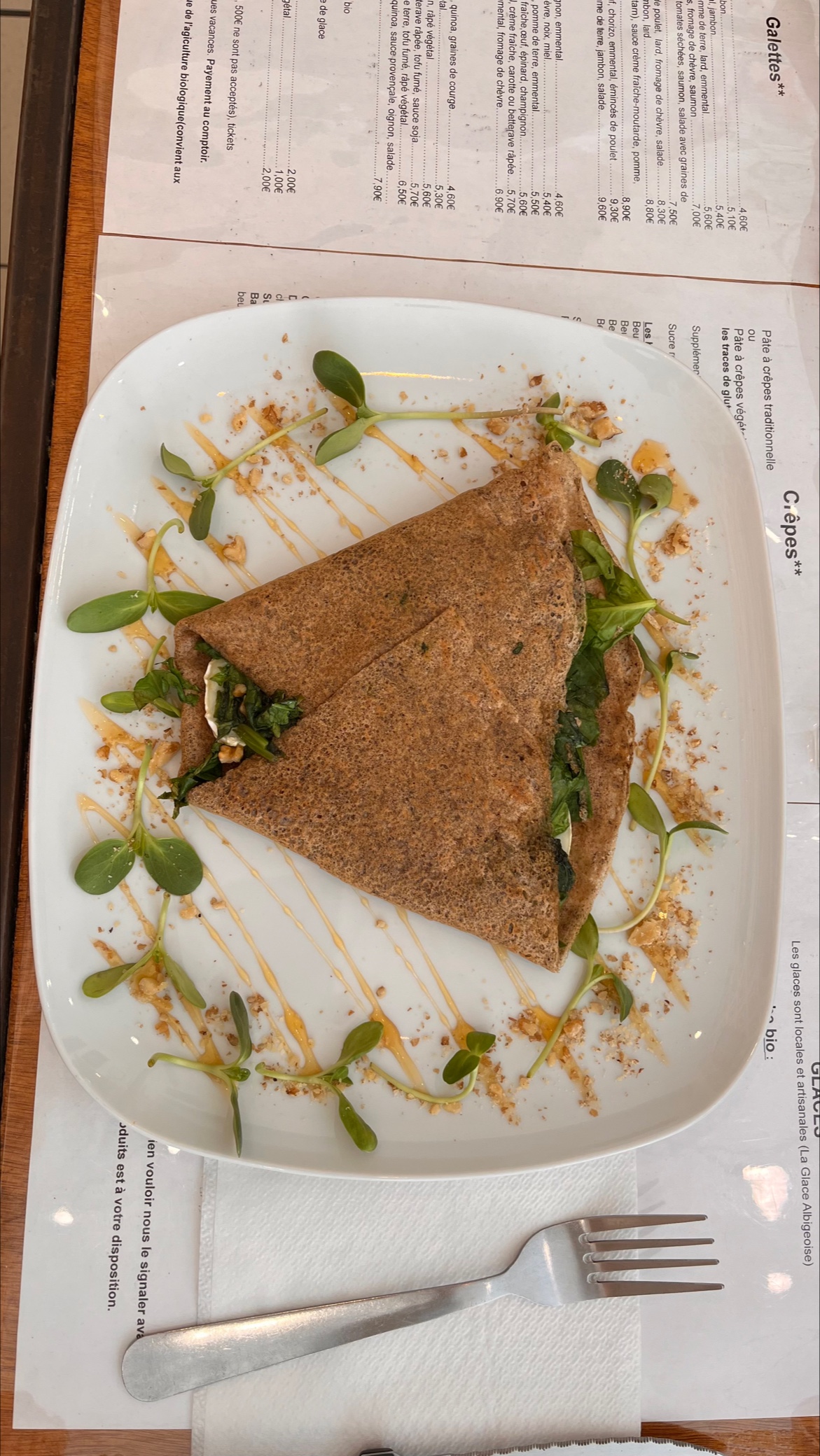 Super petit restaurant avec des crêpes garnies et délicieuses !