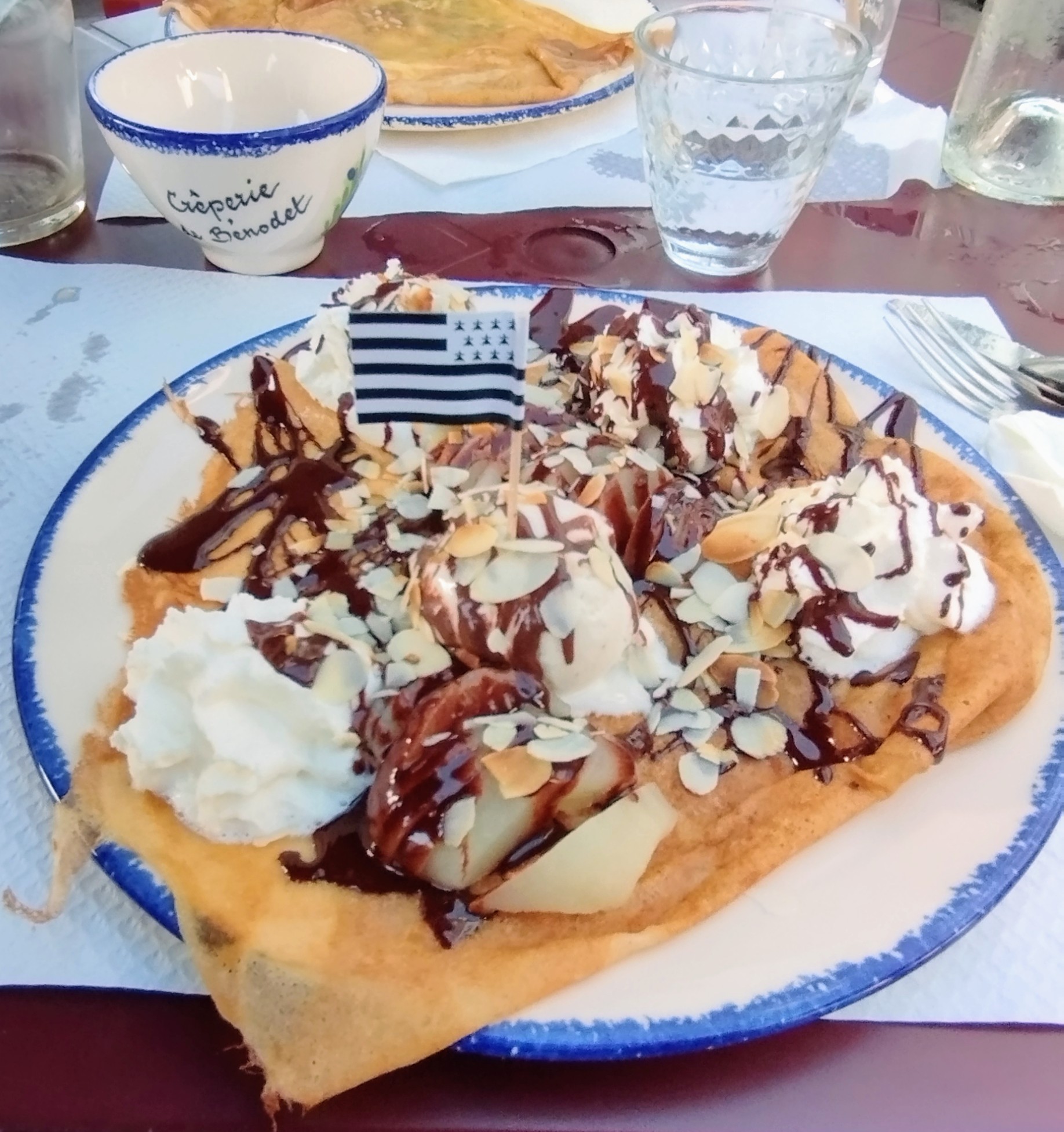 Un établissement emblématique de Benodet ou nous aimons revenir régulièrement. De très bonnes crêpes croustillantes avec un service rapide et efficace. Merci à vous.