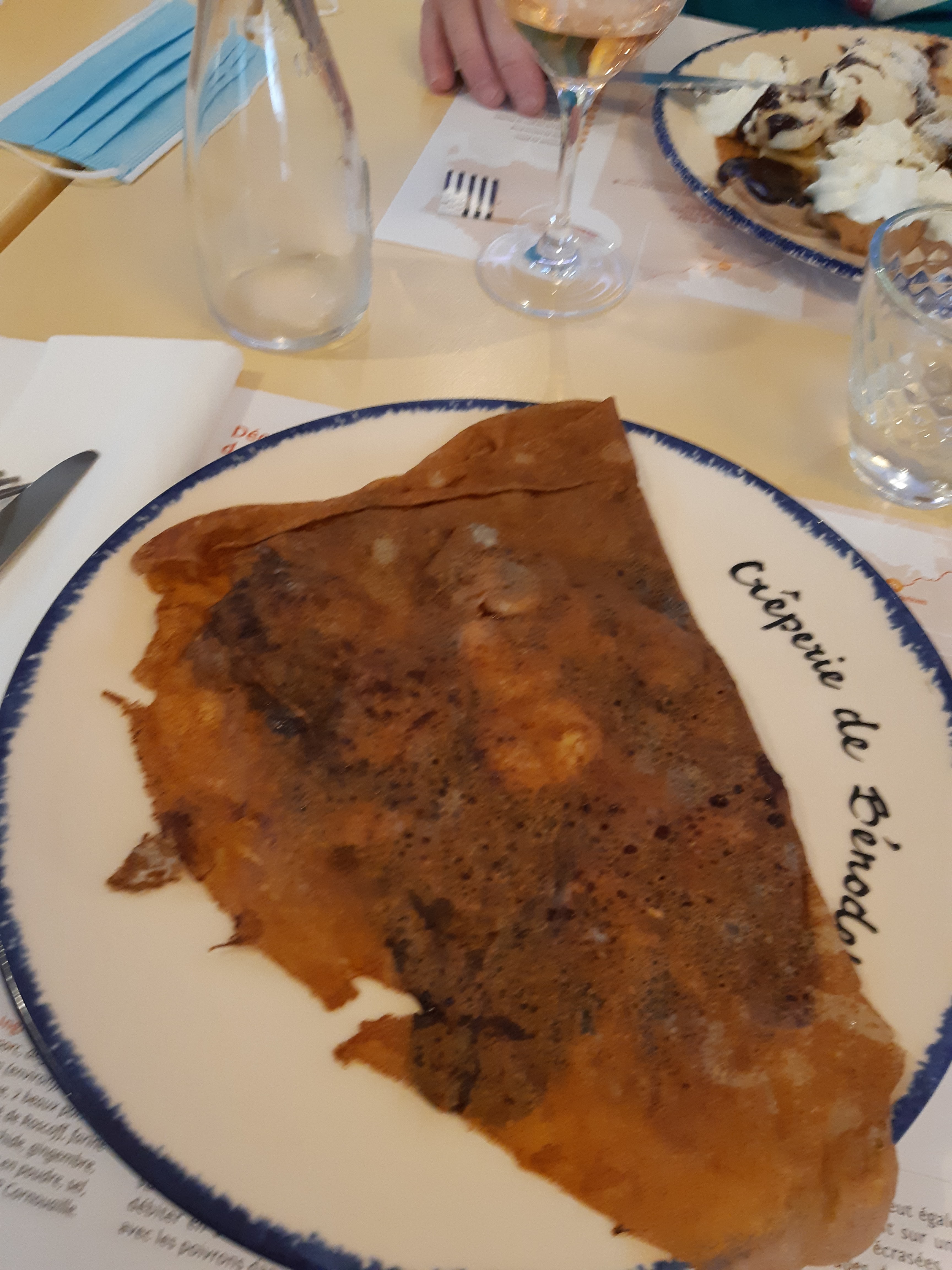Crêpe servie sans prendre le temps de la plier. Service express puis le patron vient nous demander de partir car il veut la table pour un second service. Autant aller au McDo si c’est pour manger mal en 10min