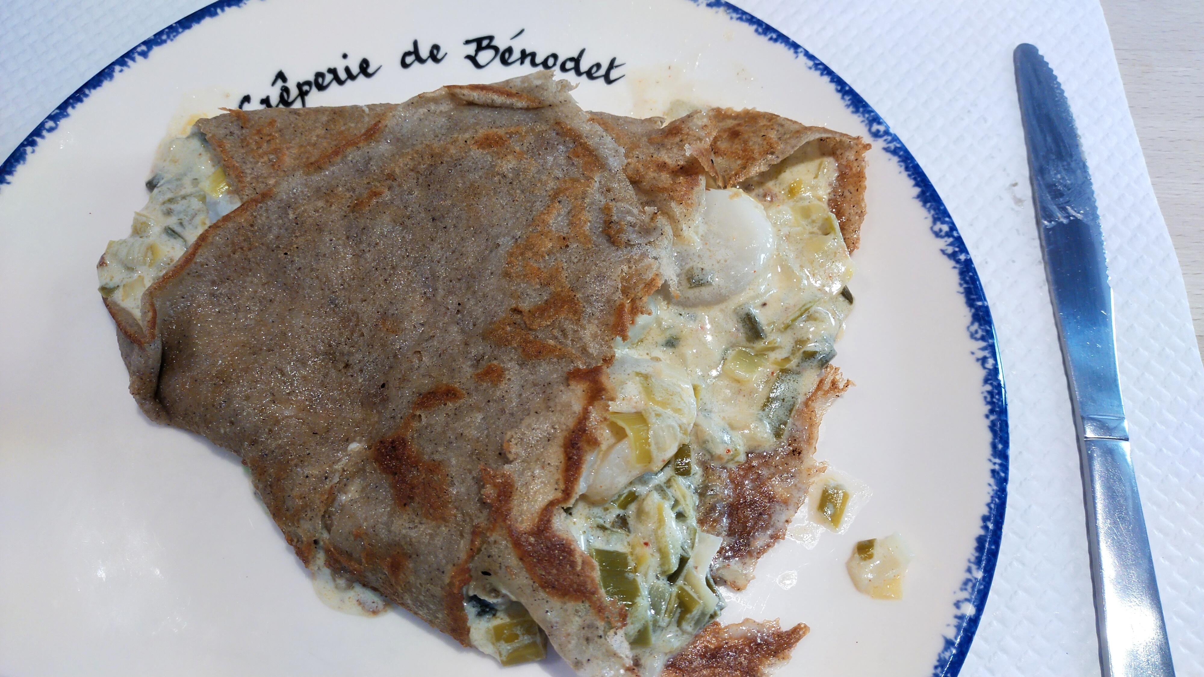 Un spectacle de désolation. Dans l'assiette, une sorte de bourre-cochon ramolli et foutraque, préparé à l'avance et brouillonement fourré d'une hideuse préparation décongelée. Une insulte au savoir-faire breton.