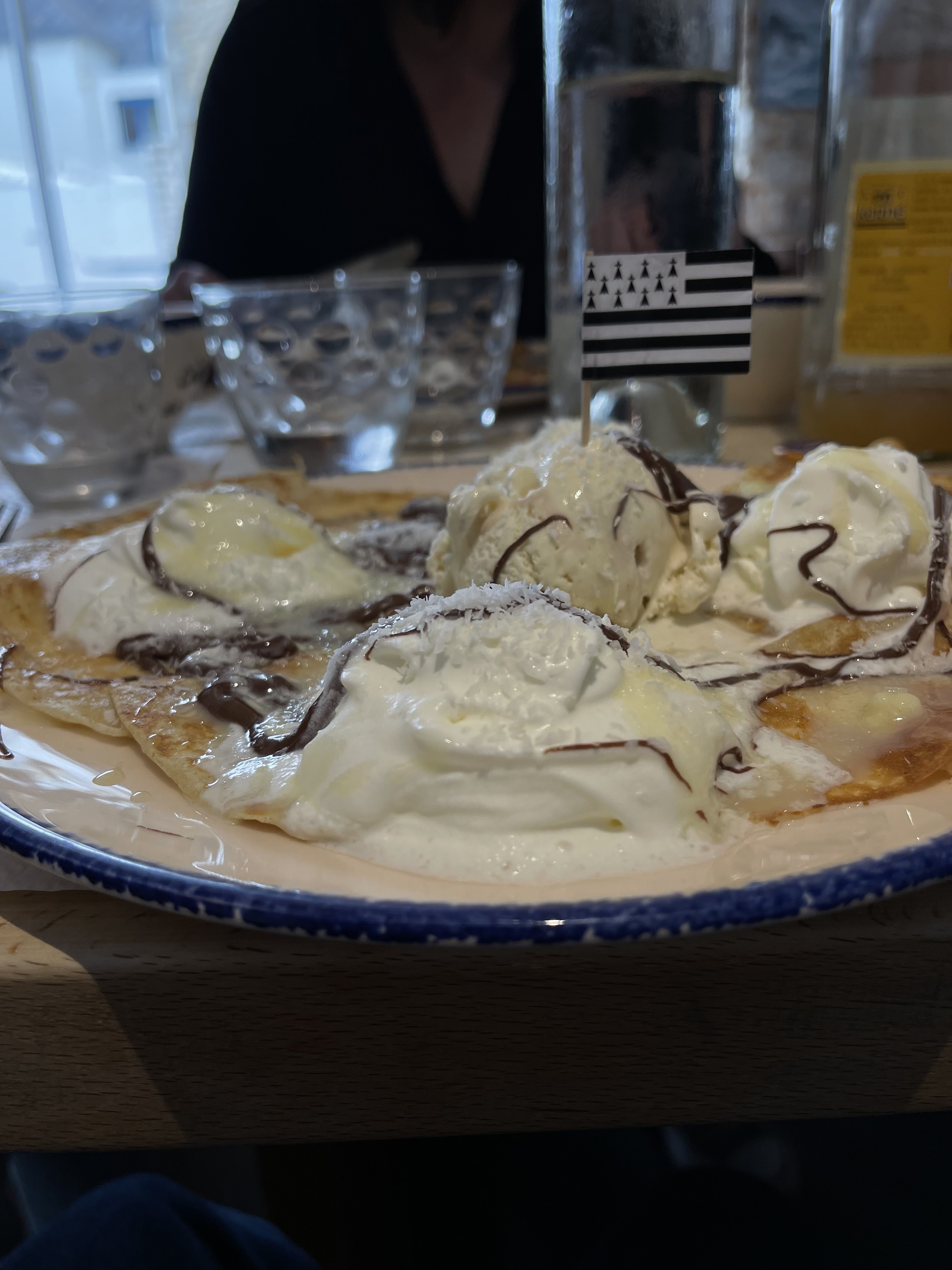 Crêpes très bonnes, légères, qui se mangent toutes seules (complète, et coconut). Au point de craquer pour une petite dernière, par gourmandise. Mention spéciale pour la vaisselle typique de ma région, j'adore.