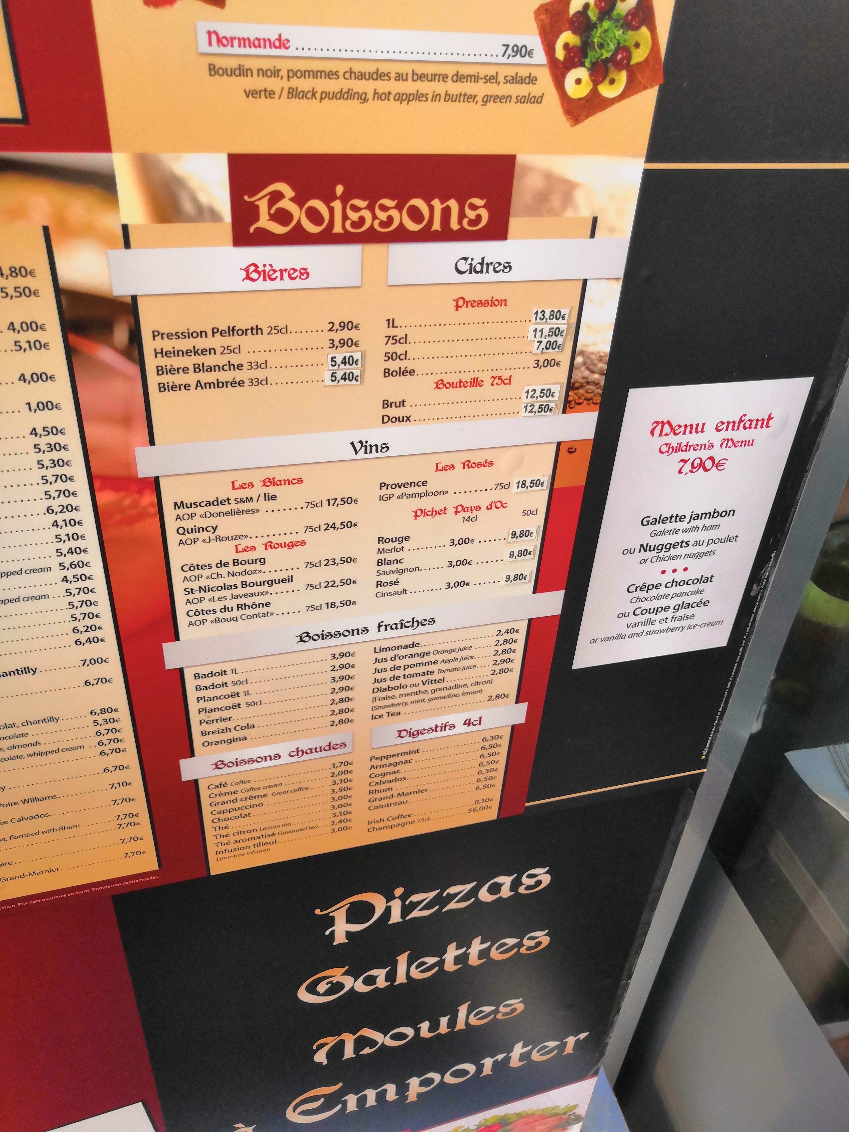 Bonne expérience, nous avons pris galette celte et super complète. En boisson cidre pression. Bonne cuisine,très aimable, prix très abordable. Dans un cadre magnifique