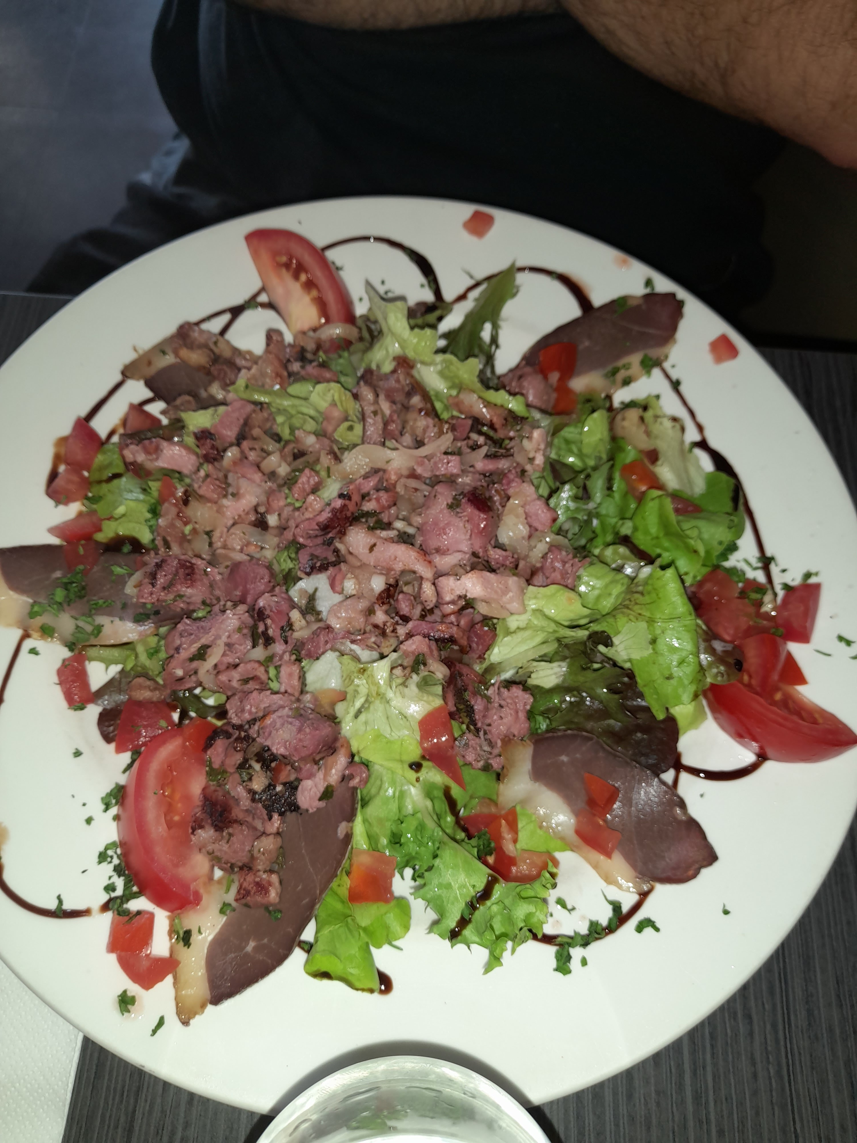 Salades chères pour des assiettes très peu remplies et douteuses: Dans ma salade landaise un peu de jaune d’oeuf et un croûton non prévus! Et mon conjoint un œuf éclaté et un morceau de crêpe dans sa salade provençale. Des feuilles de salade coupées en tout petit morceau avec des feuilles entières. On avait l’impression d’avoir des assiettes reconstituées. On y a pas pris de dessert…