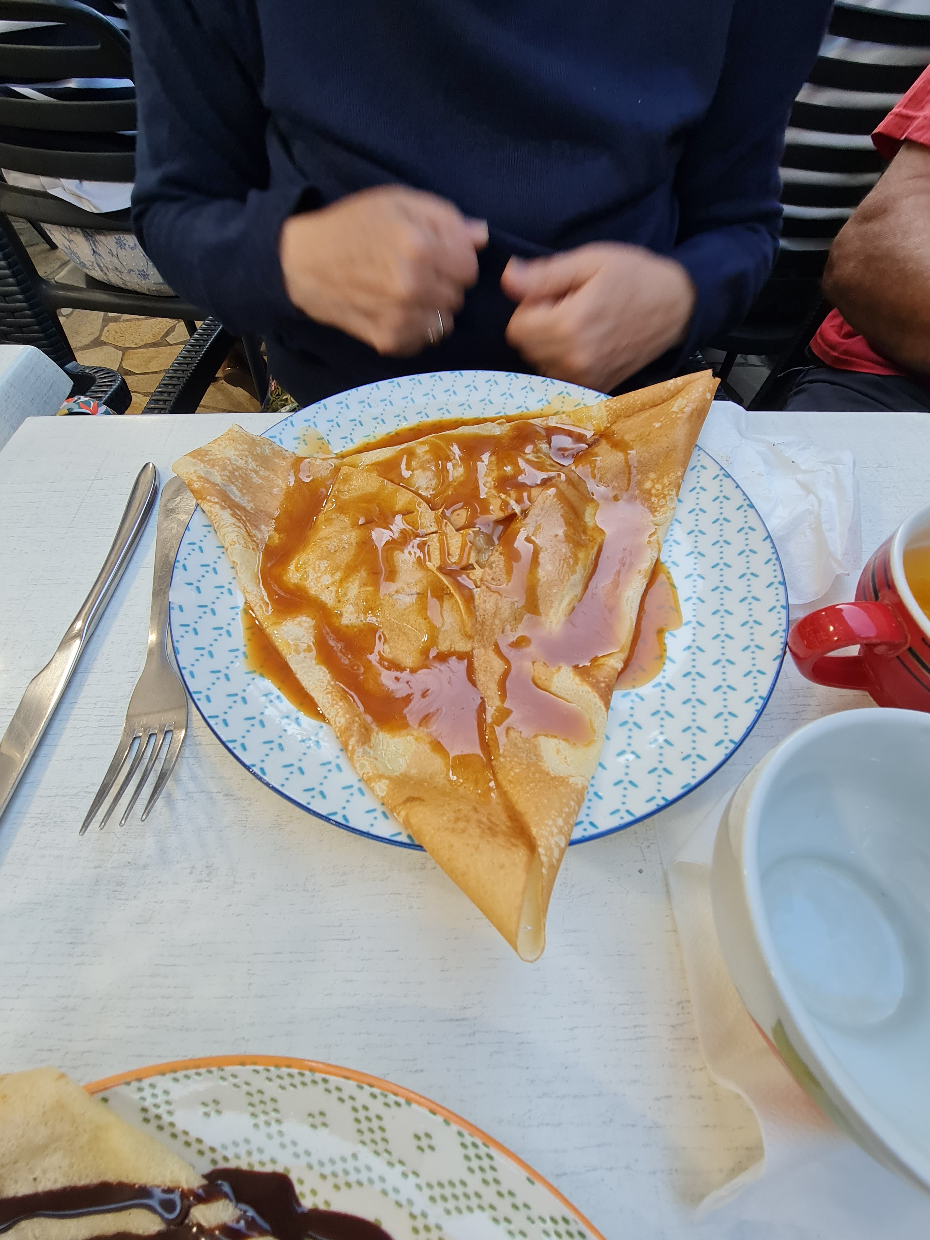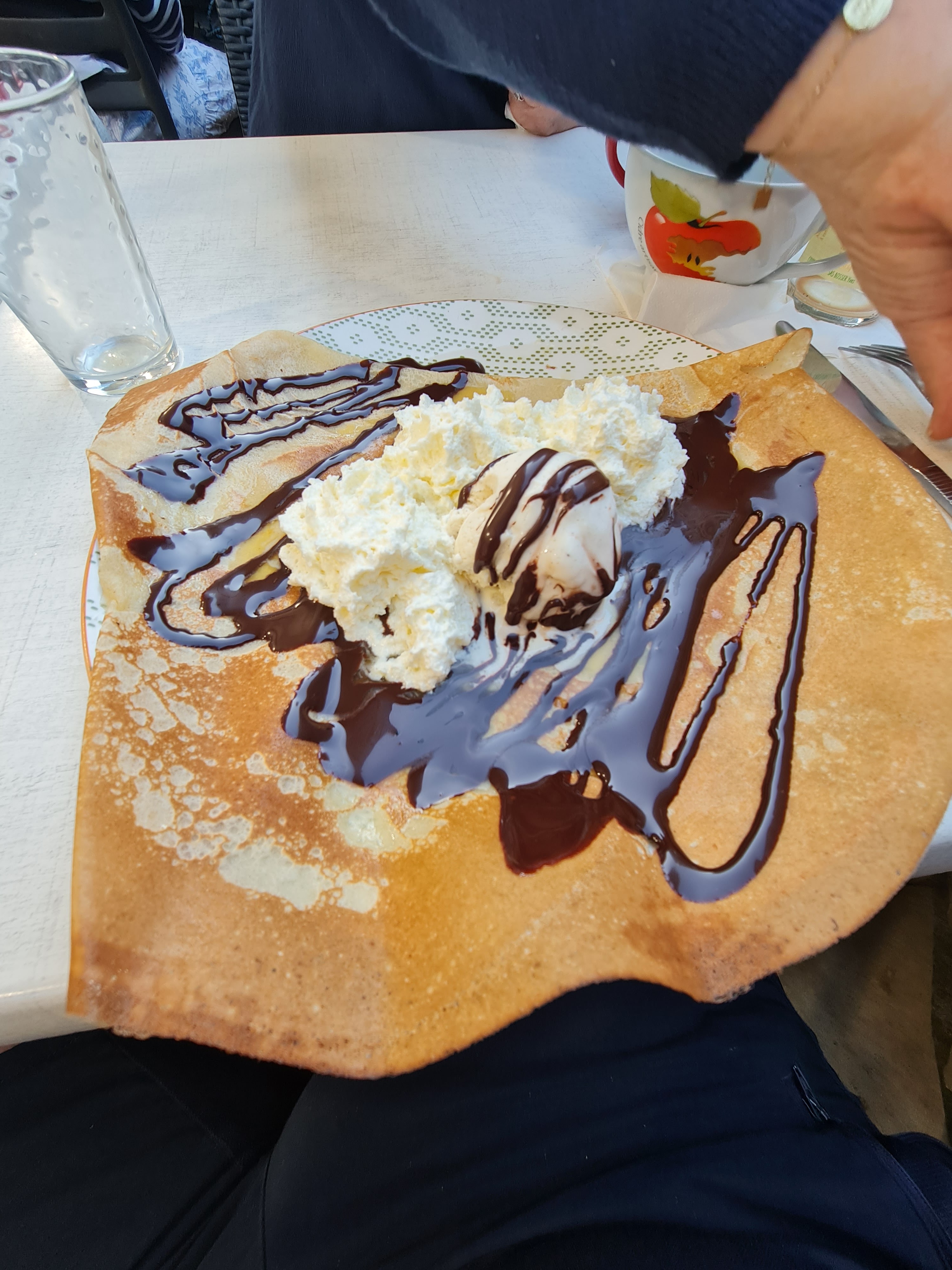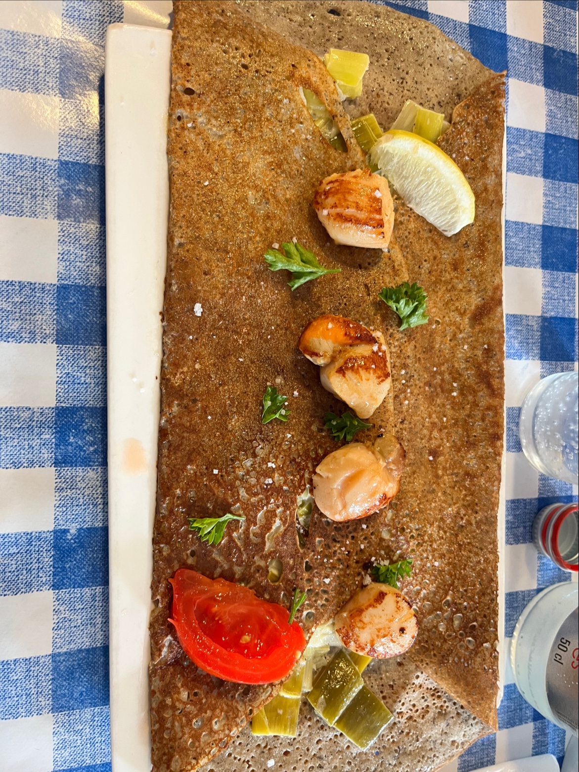 Cette crêperie nous a permis de manger une bonne galette aux noix de Saint Jacques avec en garniture, une très bonne fondue de poireaux. En dessert, une bonne crêpe au chocolat et une crêpe à la crème de marrons. Superbe terrasse et avec une équipe sympathique.