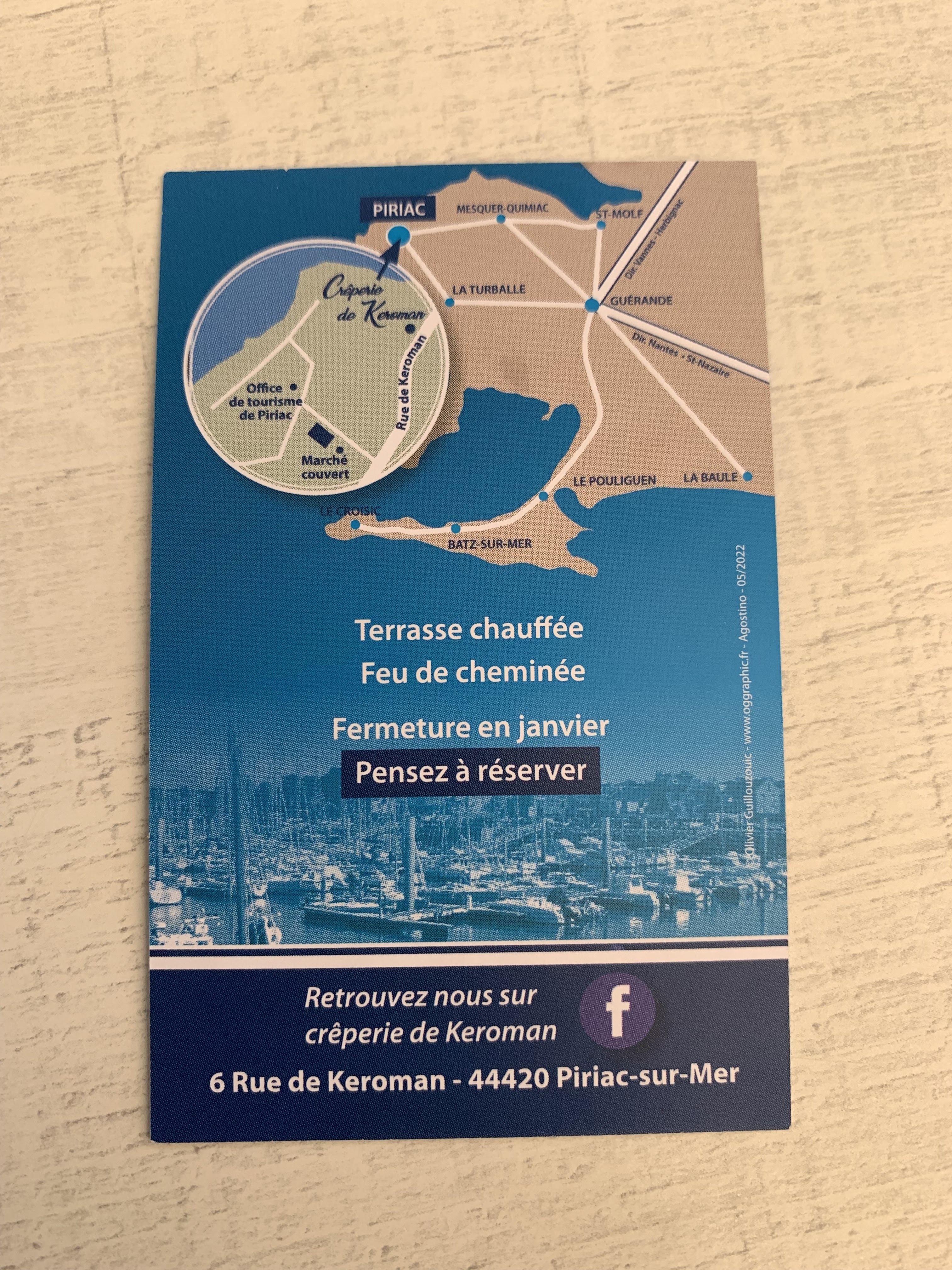 Nous nous faisions une joie de déjeuner dans cette crêperie que nous fréquentons lors de nos venues à Piriac. Et bien aujourd’hui nous avons été très déçus par l’accueil non professionnel, l’absence de sourire de l’équipe, les crêpes chères et peu travaillées et pour couronner le tout, on nous a fait comprendre qu’il était temps de partir en nous apportant l’addition le repas à peine terminé. Très décevant alors que nous sommes sur un début de saison, et sur le week-end de Pentecôte ! L’équipe a quelques semaines encore pour se former pour la saison d’été….