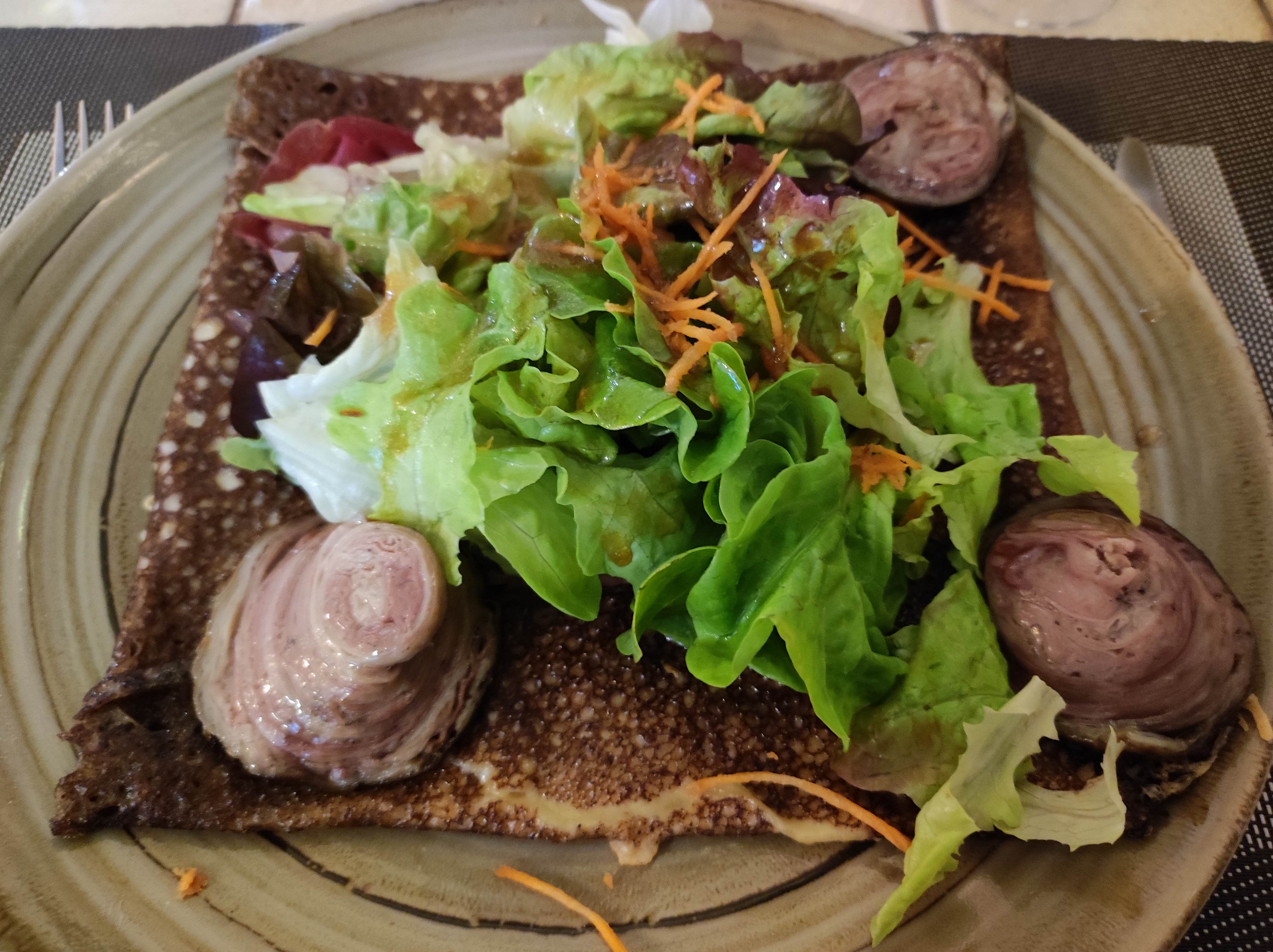 Personnel super sympa et on y mange bien! C'est vrai qu'une petite salade avec la galette serait un plus mais vu la qualité des produits dans l'assiette on pourrait y perdre! J'y vais à tous mes deplacements et j'y ai toujours bien mangé