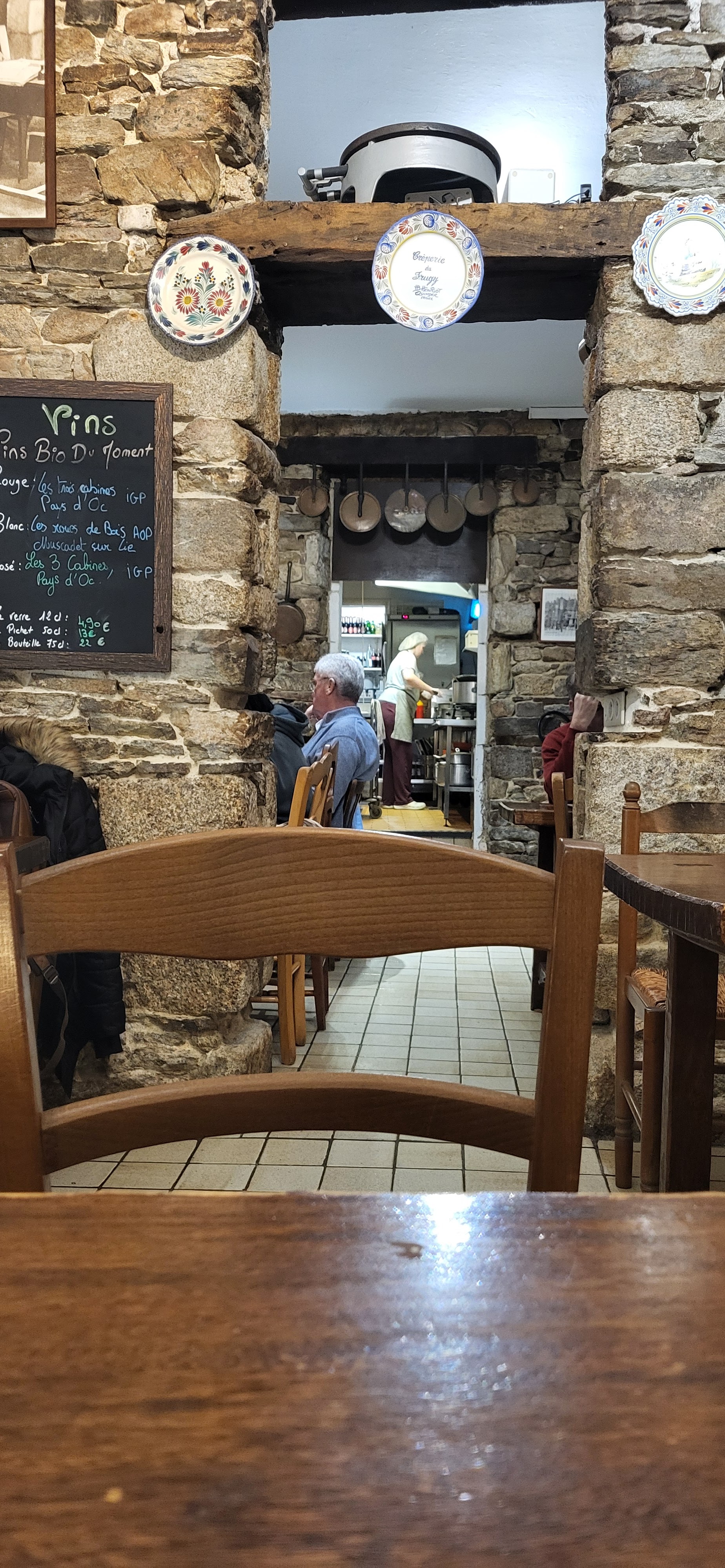 Cadre rustique typiquement breton, les crêpes de sarrasin sont délicieuses, bien garnies tout est fait maison. Je vous conseille la crêpe banane chocolat blanc crème fouettée maison, un vrai délice. Sans oublier le service convivial et chaleureux. Merci 🤩 on a super bien mangé, on reviendra…!