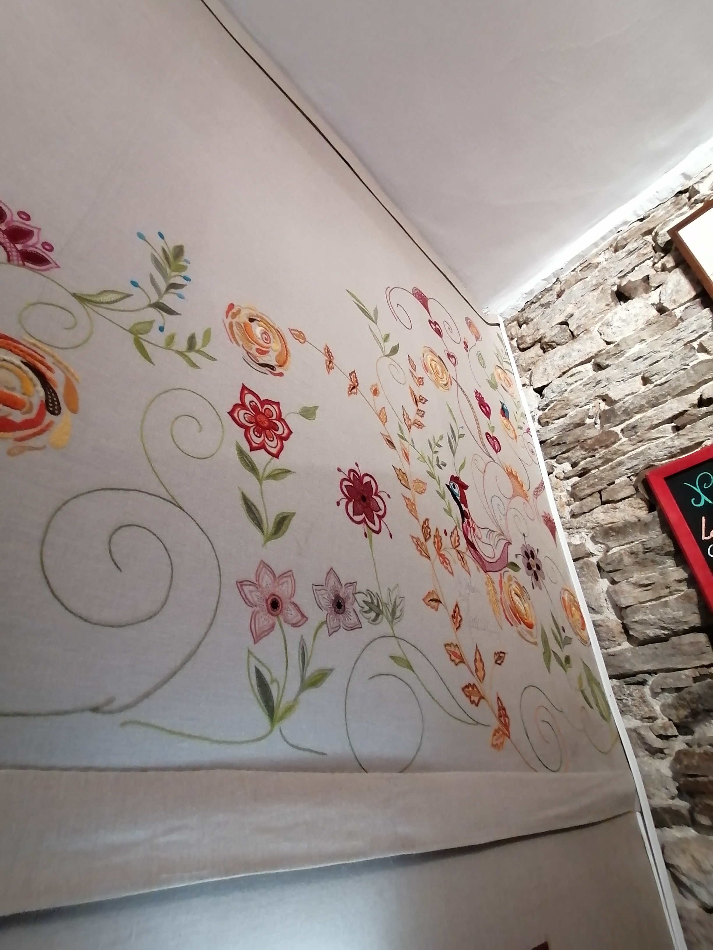 Nous avons dîner dans cette crêperie qui présente un belle œuvre en broderie sur un mur complet. Nous avons pris la BZH et nous avons apprécié la présentation et la délicatesse de cette délicieuse galette. Le vin en pichet rosé était très bon. La crêpe à la crème de marron excellente et la glace maison passion delicieuse. Le service à été efficace et fait avec le sourire. Très bonne crêperie.