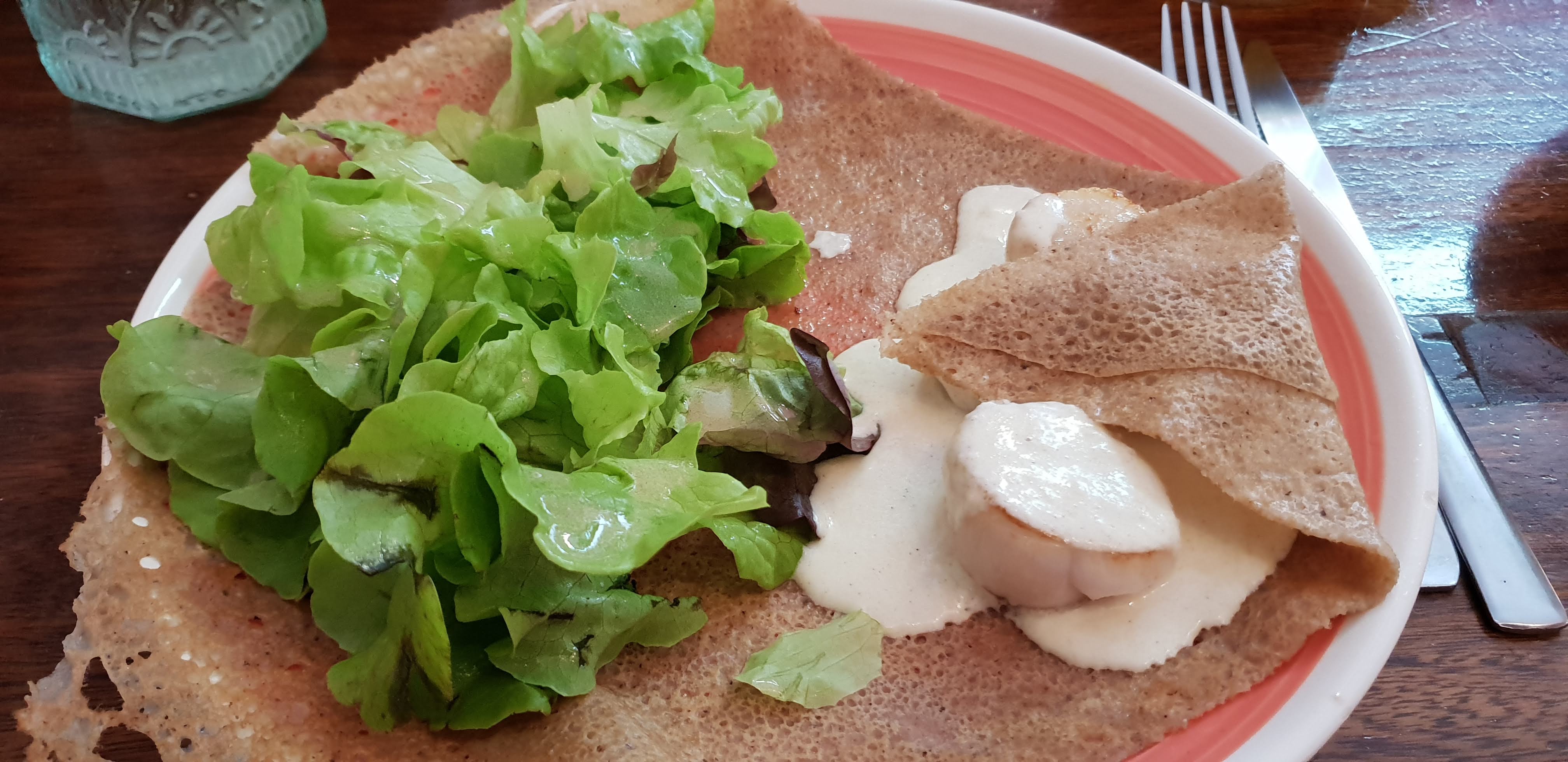Alors d'abord, je dois dire que j'ai grandi ici et que j'ai essayé toutes les crêperies de la ville au fil des années. Et cet endroit les bat tous en termes de qualité, de prix, d'originalité et de cohérence dans tout ça. Ce qui n’est pas peu dire, étant donné que Quimper est sans doute le meilleur endroit de Bretagne pour les crêpes, que la Bretagne est la meilleure région de France pour les crêpes et que la France est sans aucun doute le meilleur pays au monde pour les crêpes. Je jure que je ne suis pas payé, crêperie numéro un au monde d'après mon raisonnement.