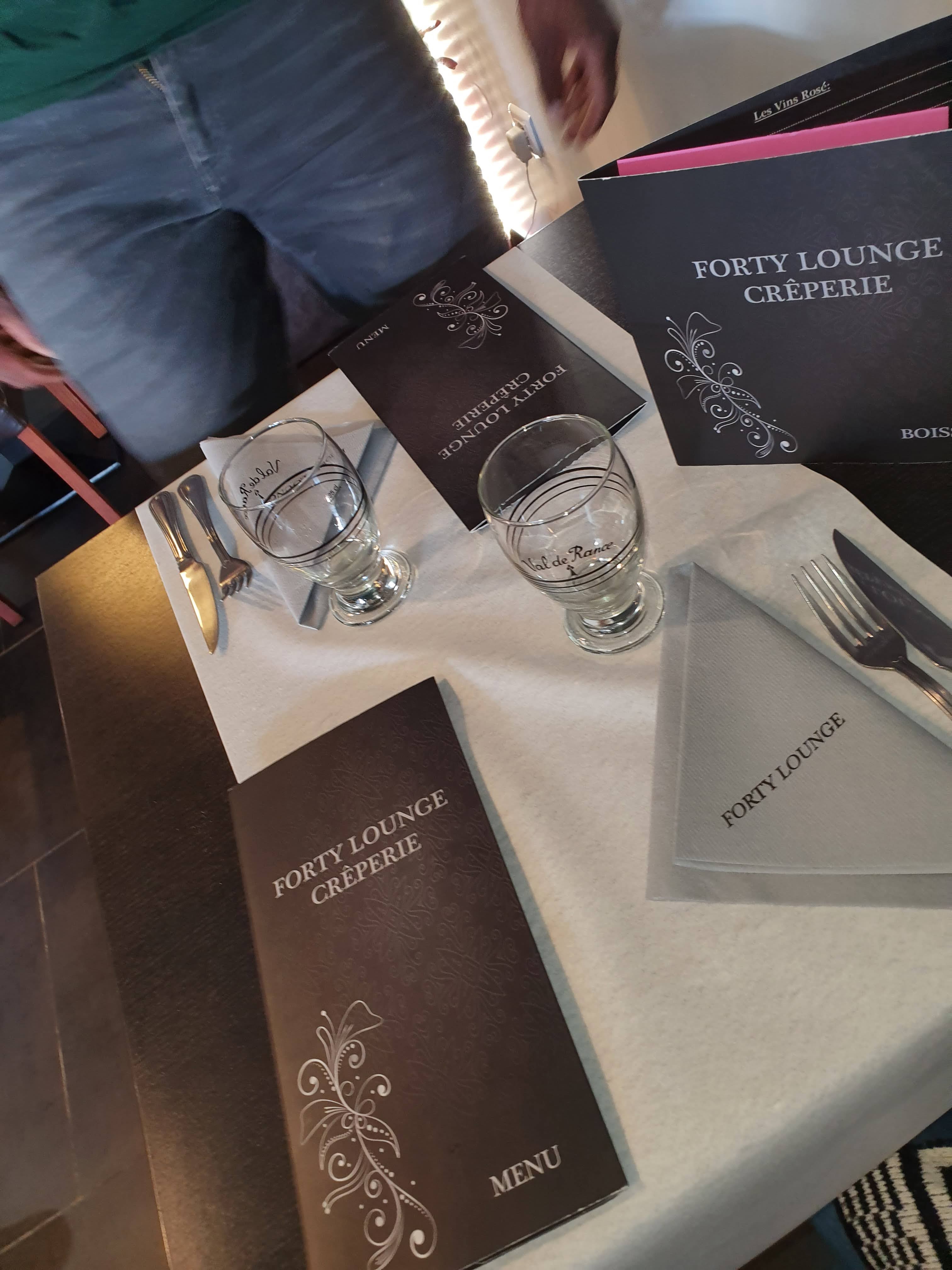 Très bon accueil, des crêpes délicieuses et copieuses, des saveurs très bien pensées et qui laissent un souvenir impérissable ! Quand on vient à Forty Lounge, on ne peut pas être déçu tellement la cuisine est bonne (une tuerie !!!), le cadre est agréable (déco, musique lounge-vintage) et le personnel est aimable. Allez-y sans attendre et sans hésiter ! Je recommande à 100%