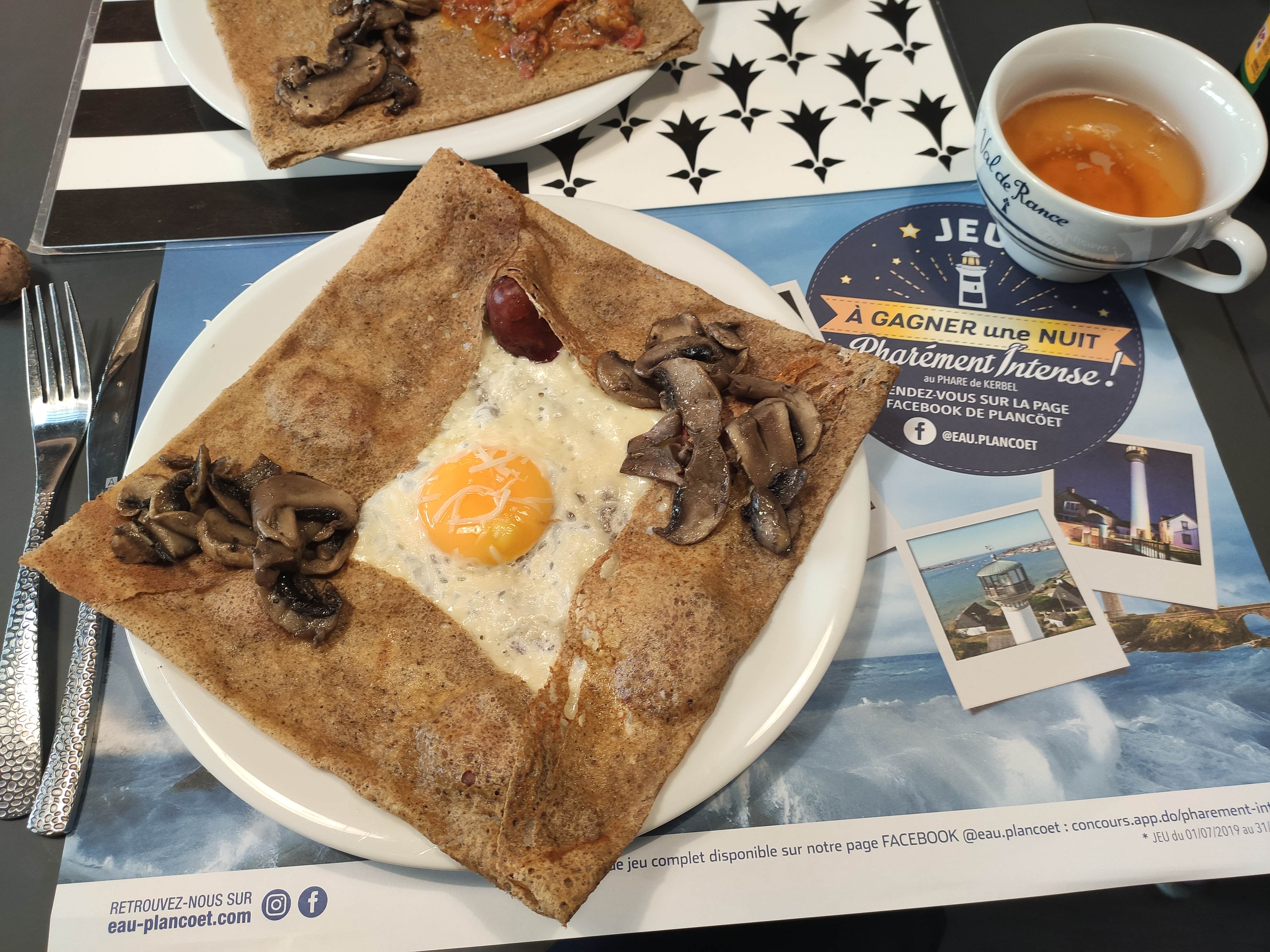 Crêpes au blé noir excellentes avec les ingrédients bien présent, rien a dire. Mais les crêpes froments manque beaucoup de sucre, je pense même qu'il a du être oublié a la fabrication de la pâte, et elle manque de cuisson. Je l'ai mangée par politesse mais je n'en reprendrais plus la bas.