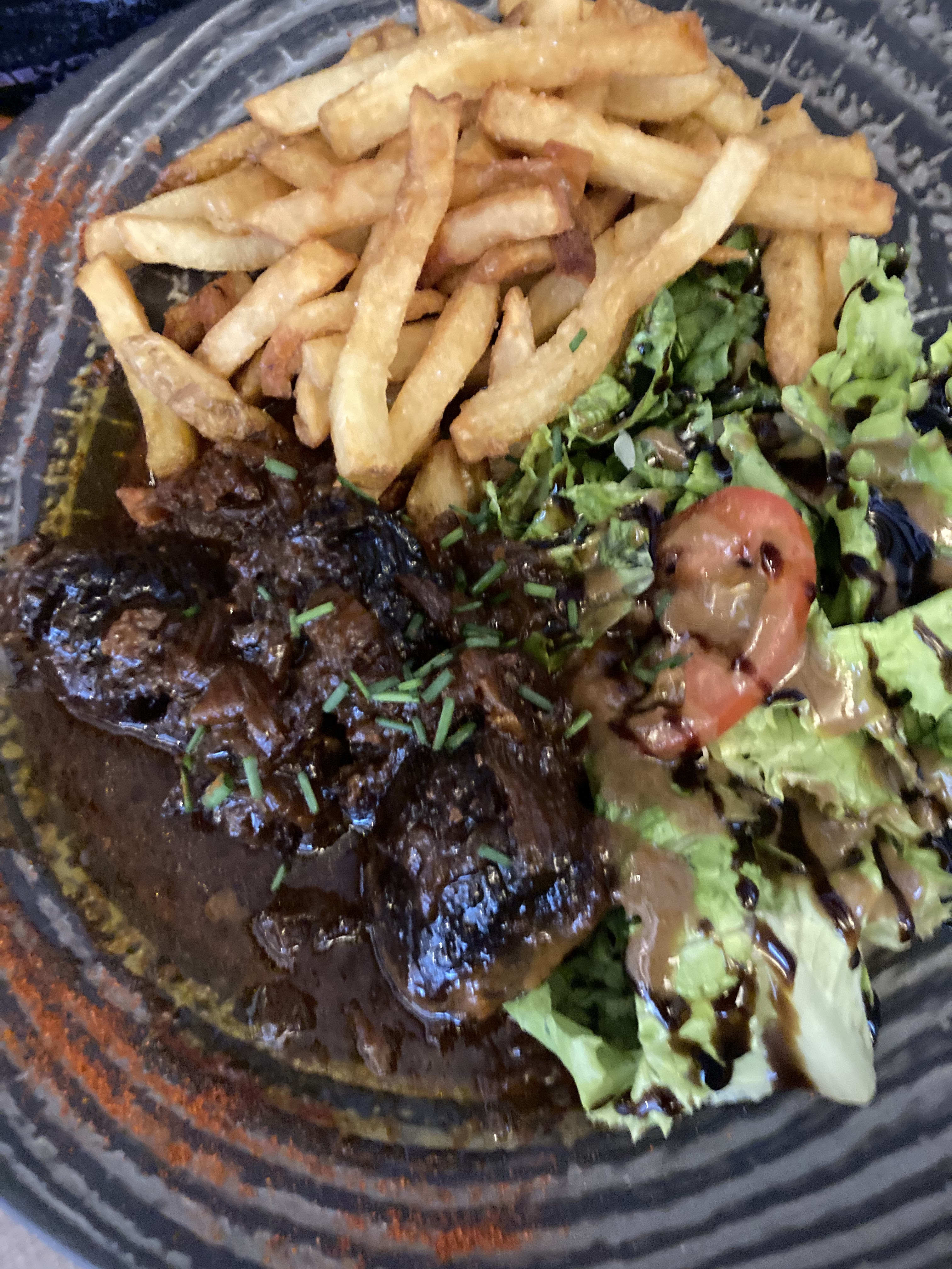 Nous avons très bien déjeuné en famille ! Frites maison, excellentes! Farine et vin bio, c’est appréciable. Merci 😊.
