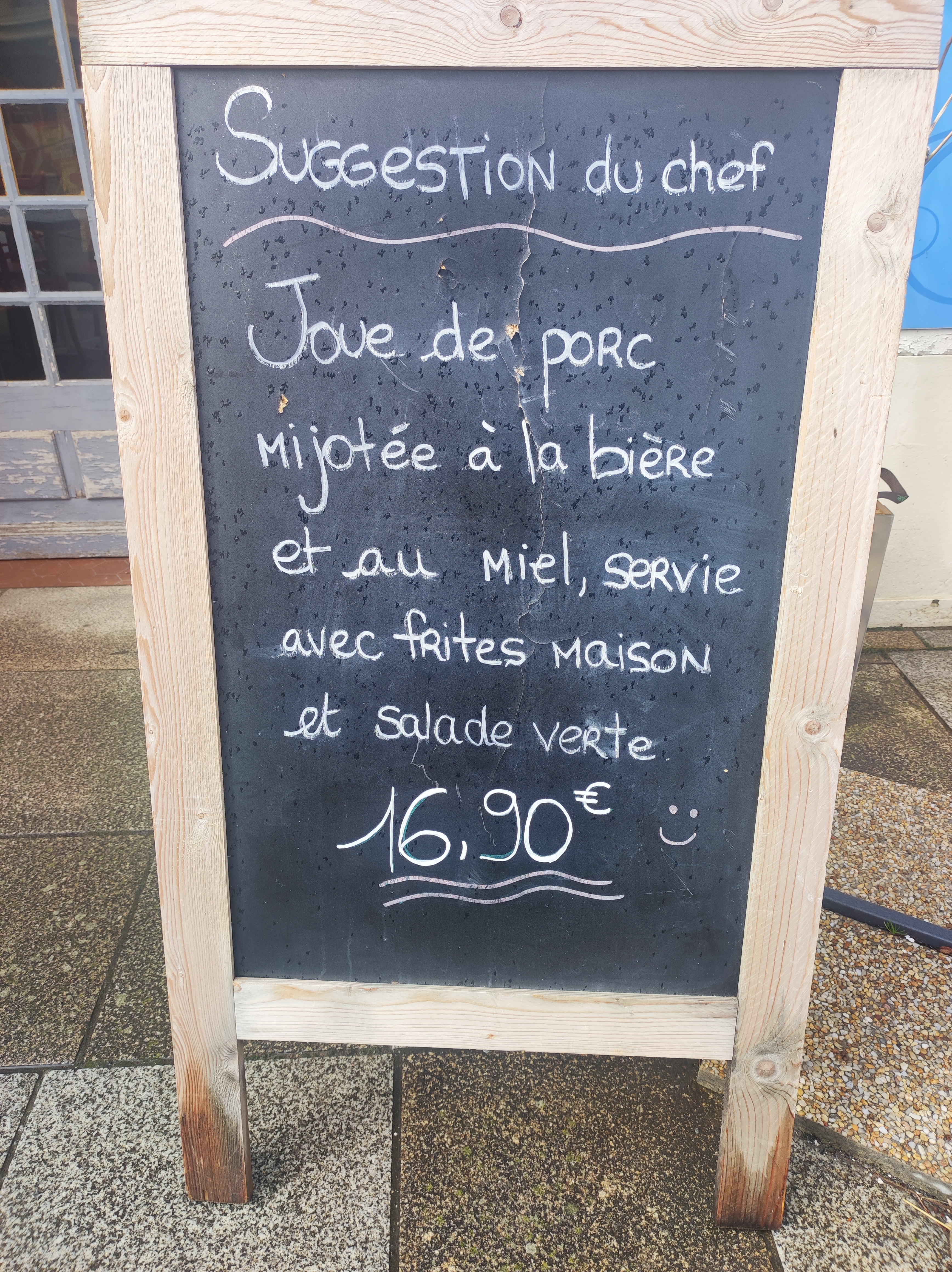 Bonjour, une très très bonne cuisine, une équipe agréable, avec le privilège de nous faire servir le dessert par l'équipe en cuisine (toute aussi agréable que les serveuses d'ailleurs) ! Peut être, un léger rafraîchissement intérieur pour être au niveau de votre cuisine, mais sinon vous avez un bel établissement et une très jolie terrasse ! Nous sommes venus le 28 juin avec mon épouse et nos 2 fils: pour les moules aux roquefort et une joue de porc au miel et à la bière. Tout est fait maison. Je recommande vivement.