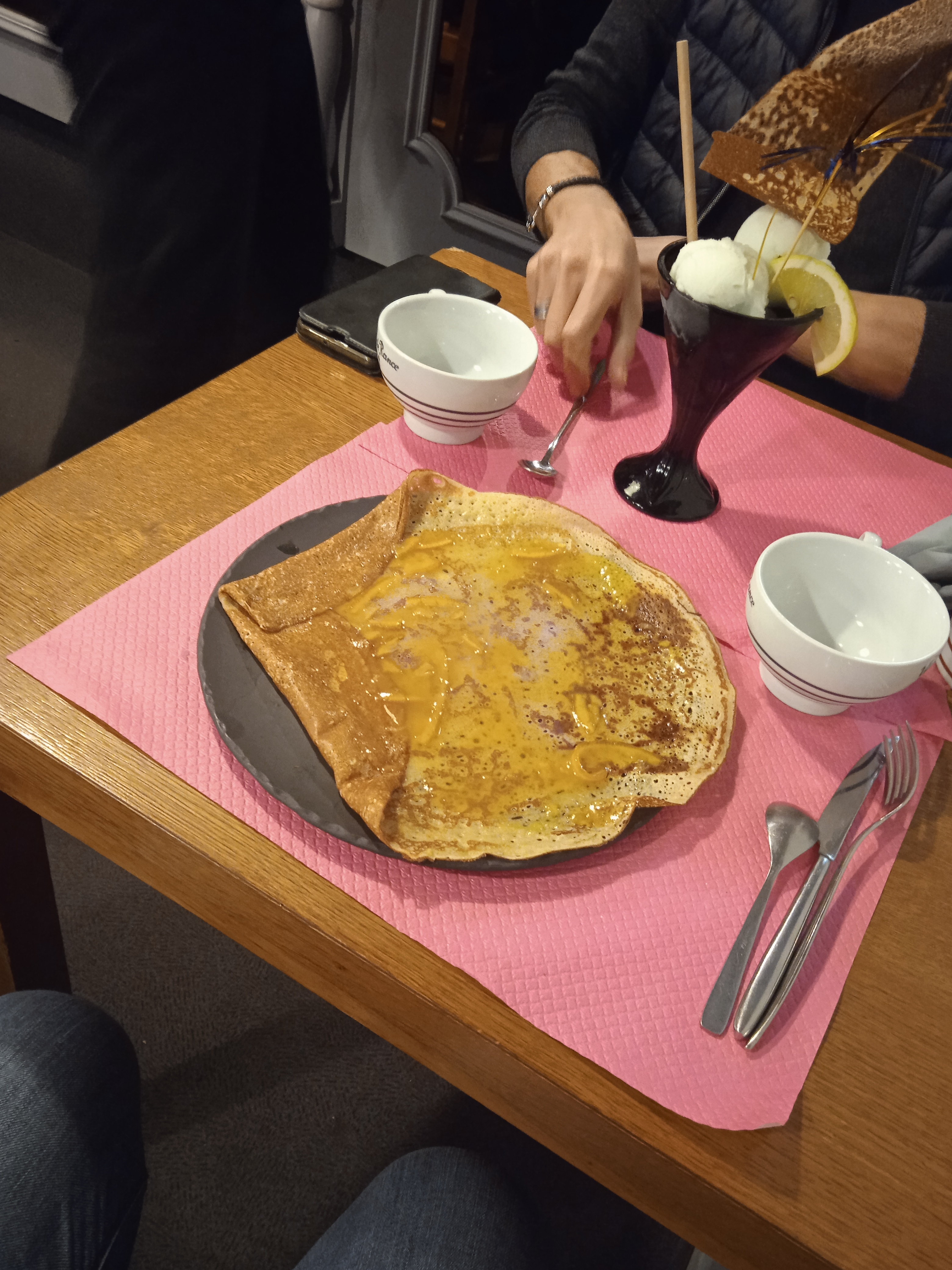 Très bonne soirée chaleureuse, galettes très bonne, service très rapide à peine finit de manger le repas qu'on nous apporte les cartes de desserts. Et dommage qu'à la fin, on se sente un peu obliger de vite payer pour libérer la table sachant qu'il n'y avait plus de service après...