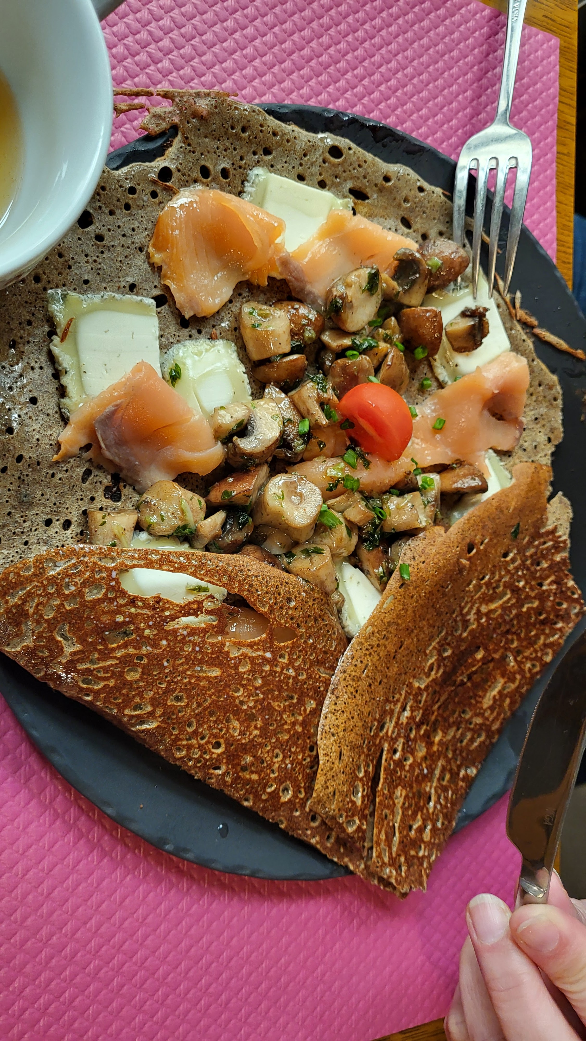 Crêpes avec du goût et bien garnie. Déception pour la salade dû à une quantité de crème fraîche beaucoup trop élevée à mon goût. Sinon l'accueil et le service très bon.