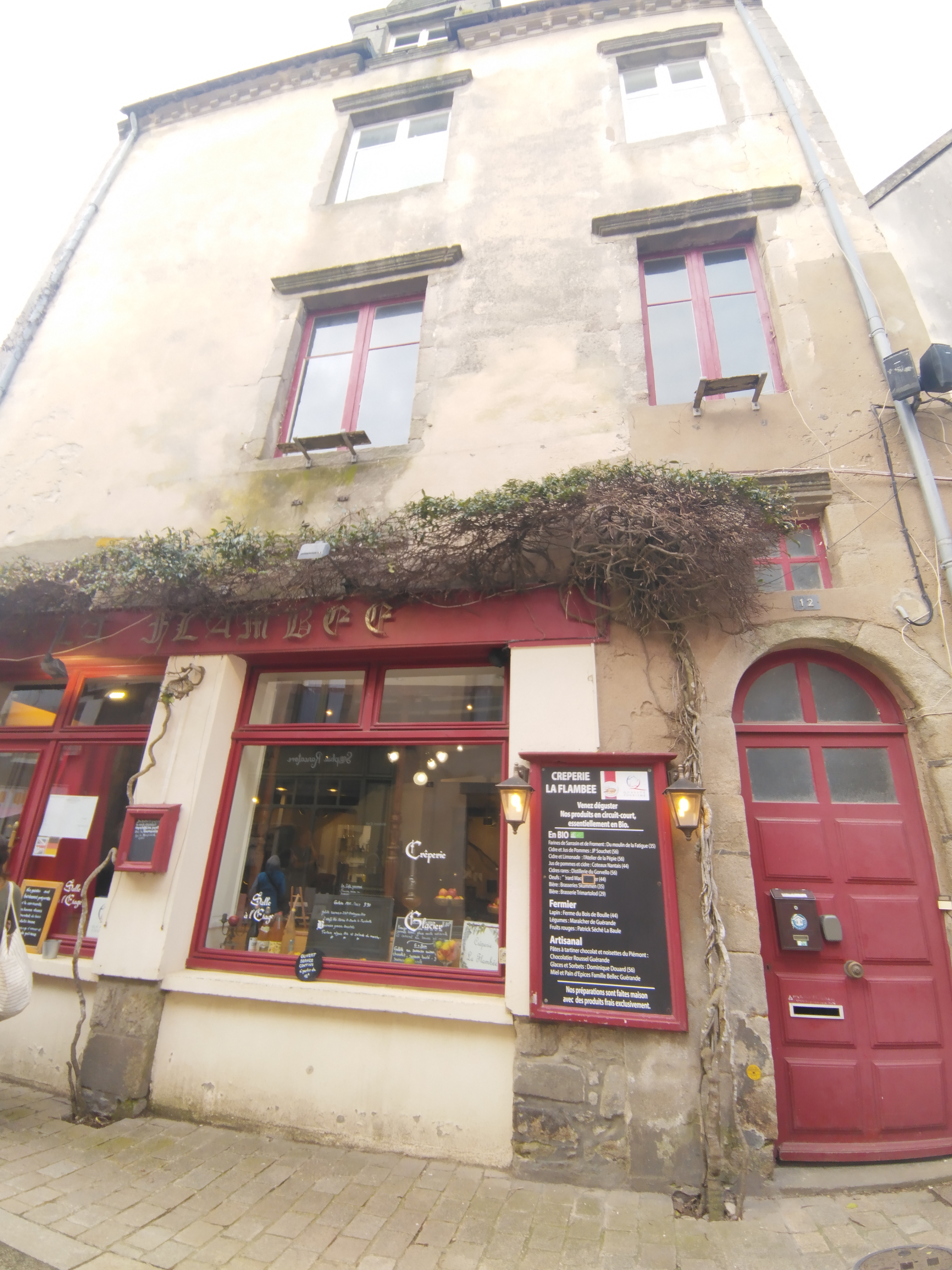 La crêperie La Flambée est un endroit à ne pas manquer pour se restaurer. Le lieu est dans un cadre historique , dans le vieux Guerande au sein des remparts. Non loin de la collégiale Saint Aubin, la crêperie offre des produits de qualité gustative sur deux niveaux charmants. Le cidre et le jus de pomme sont excellents. Les crepes denommées tete de lard et tete cochon sont à conseiller si vous aimez l'andouillette de Guéméné.L'accueil est chaleureux et à l'écoute des besoins de la clientèle. Le service est rapide . A ne pas manquer