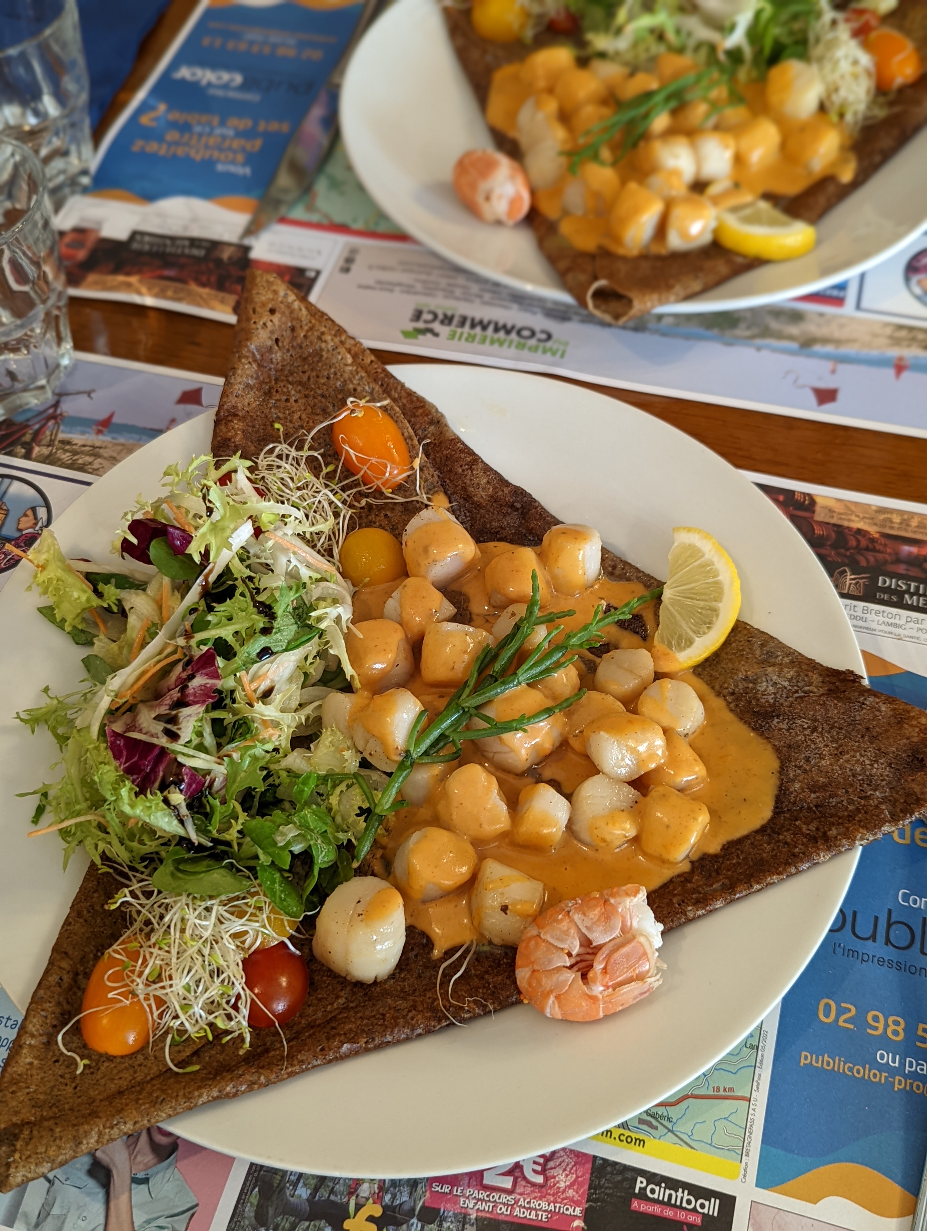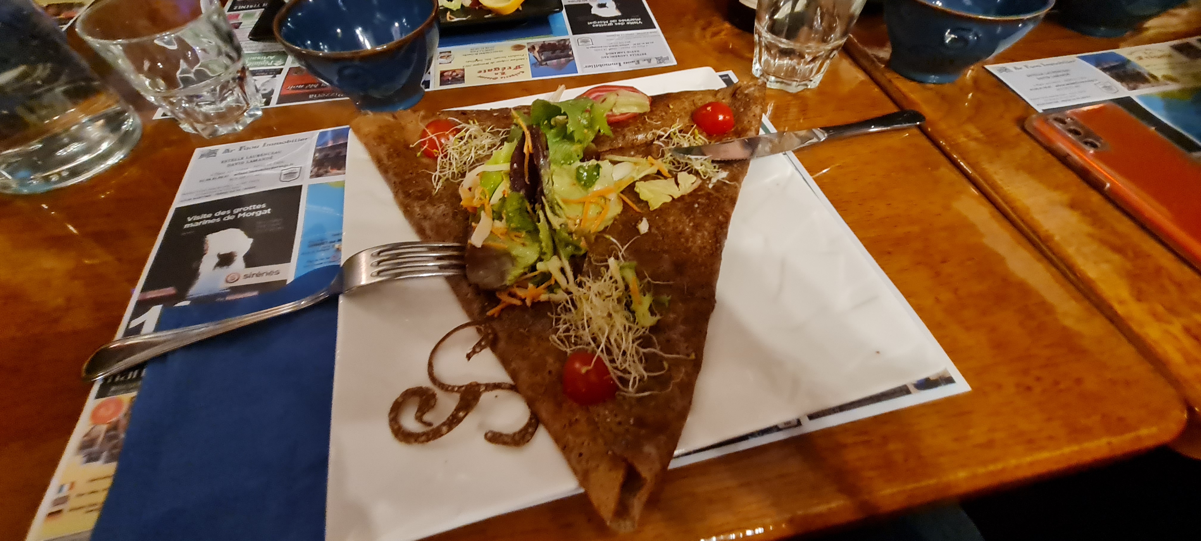 La ville est agréable et la décoration photo du restaurant est originale. La crêpe nature est très bonne, les ingrédients sont frais mais la sauce et le tout manquent d'assaisonement, c'est dommage car la présentation est jolie et très soignée. Du coup c'était la déception, surtout compte tenu du délai d'attente (prévoir une semaine). La crepe dessert était bonne et bien présentée. Nous n'étions pas pressé donc ça va, le service est un peu lent.