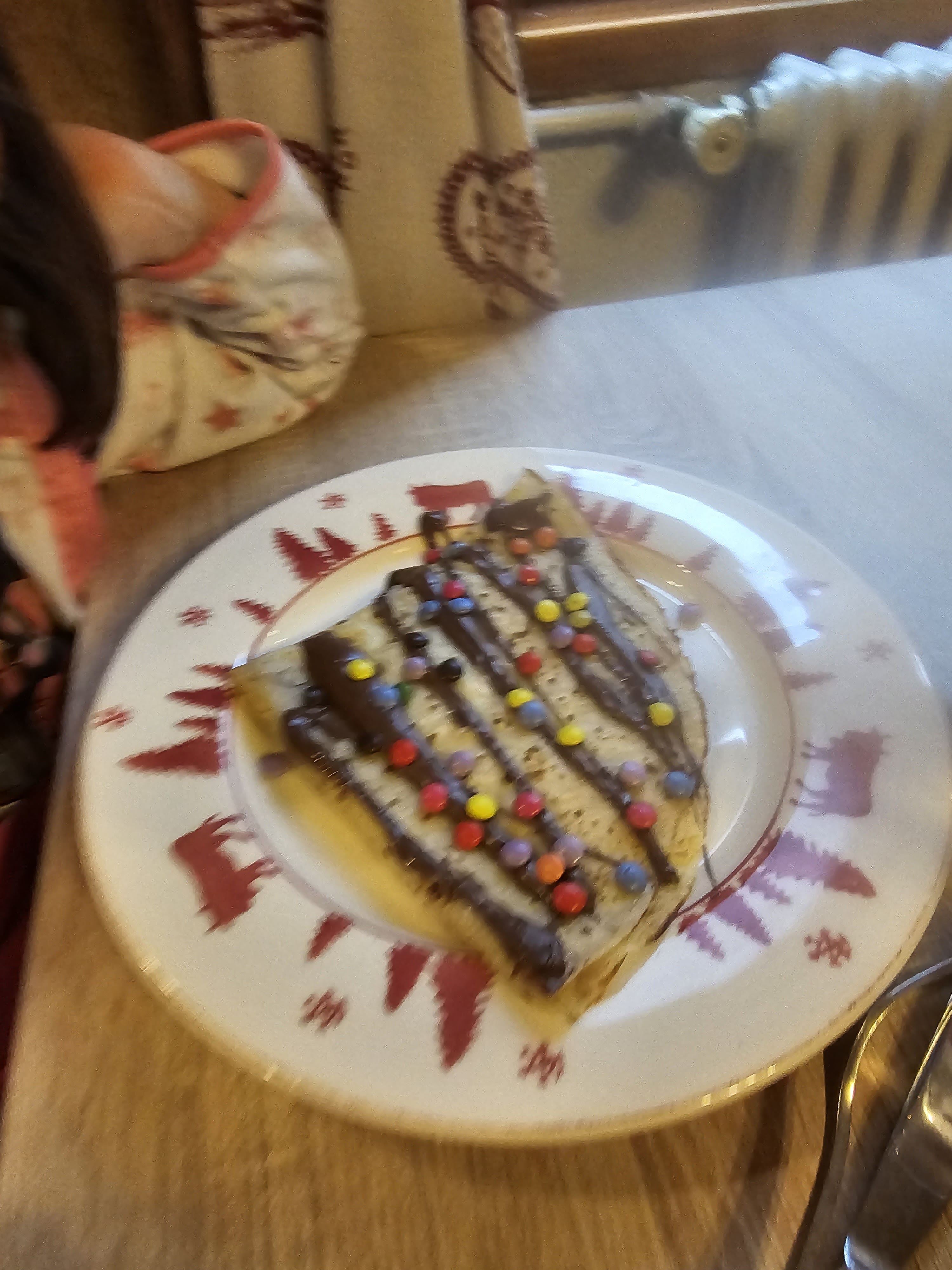 Super lieu et peu cher . Rentre pour faire un goûter ravie de notre choix vin chaud rouge ou blanc à peine 3e le verre . Variété de thé ou chocolat chaud sans compter le nombre de crêpes ou gauffre à prix abordable. Je recommande dans une ambiance très chalet