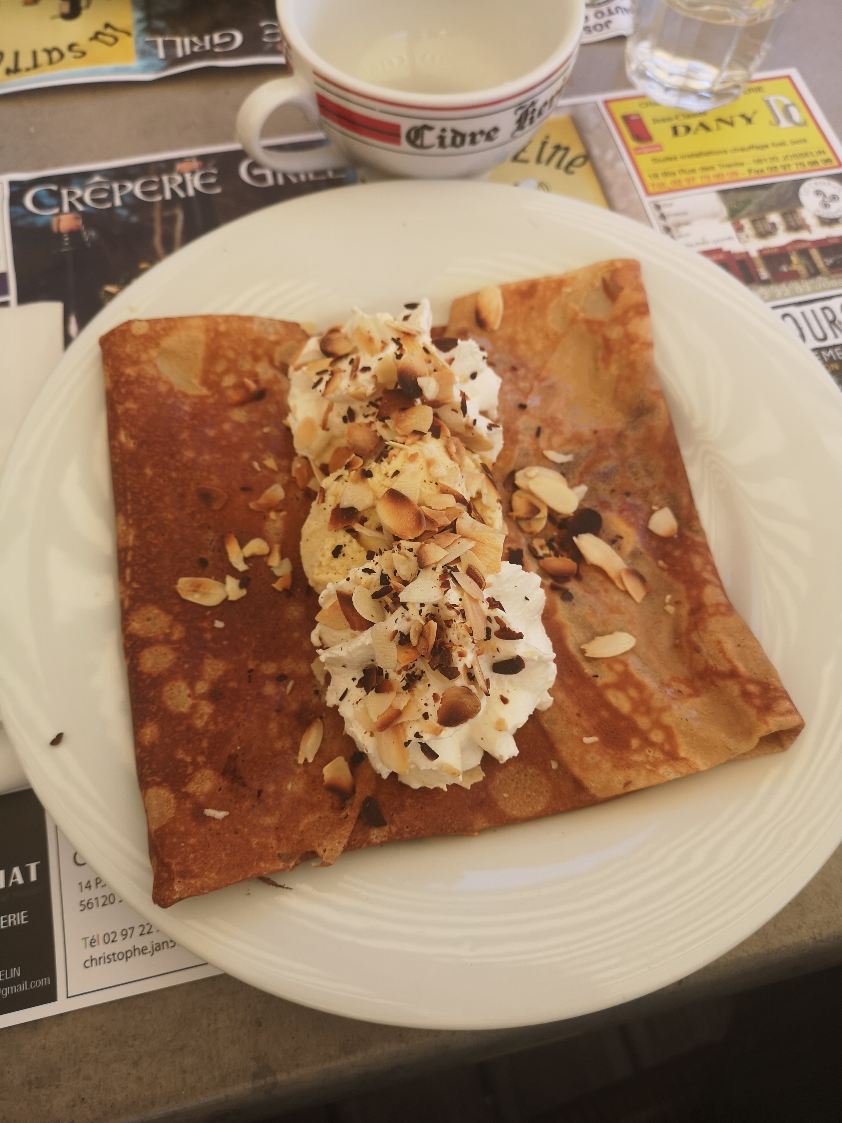 Super. Très bonne creperie au bord du canal Nantes brest .Bien placée. Tout est super bon et frais. Petit conseil au dessert: les meilleures crêpes frangipane de France : c est ICI. CATHERINE la patronne est adorable.