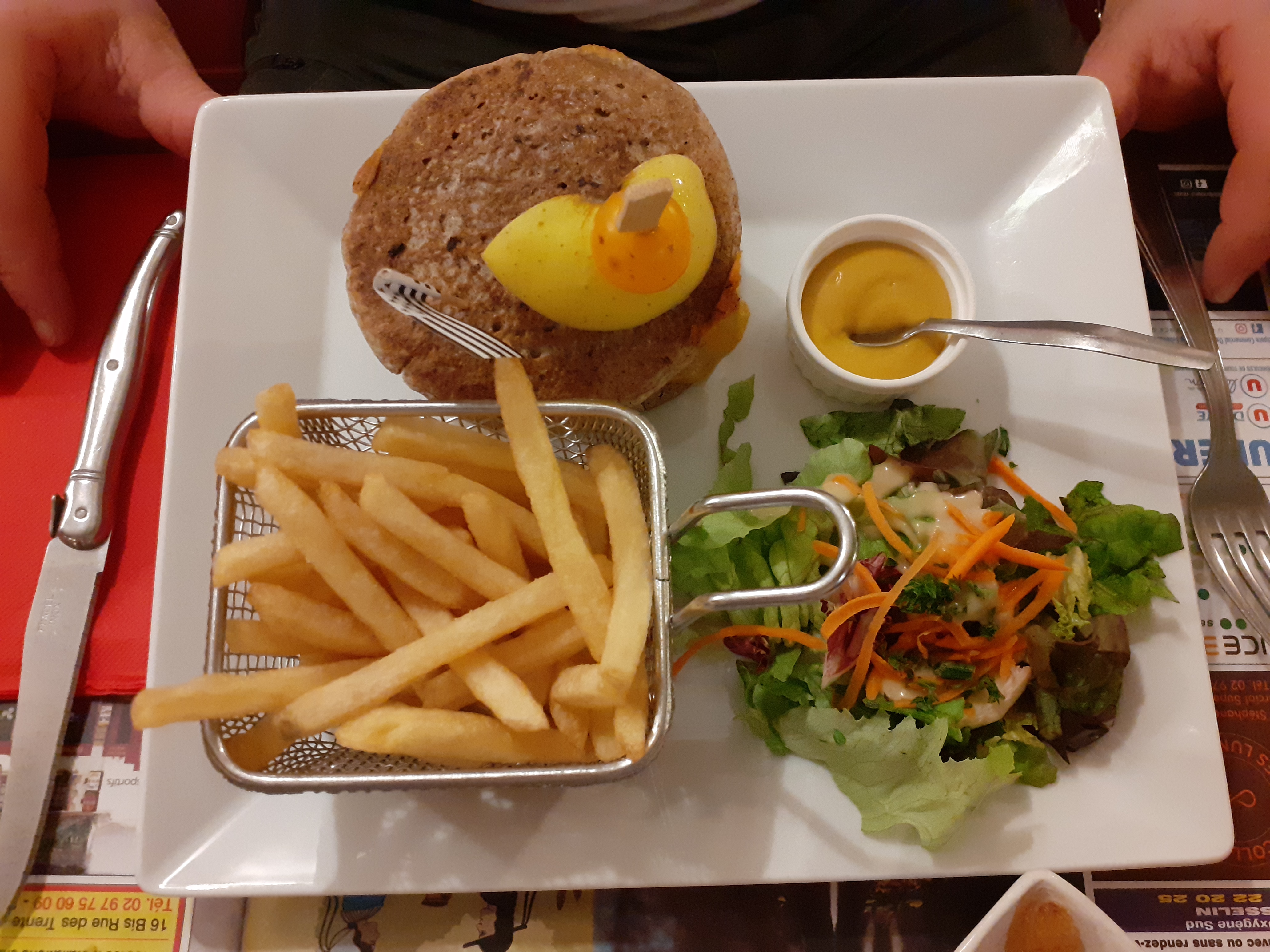Accueil très chaleureux, équipe souriante et agréable, à l'écoute de nos besoins (ils ont accepté le chien, et se sont adaptés aux allergies alimentaires) et plats délicieux ! Bon rapport qualité prix. Photo : le burger Breizh bigoudène