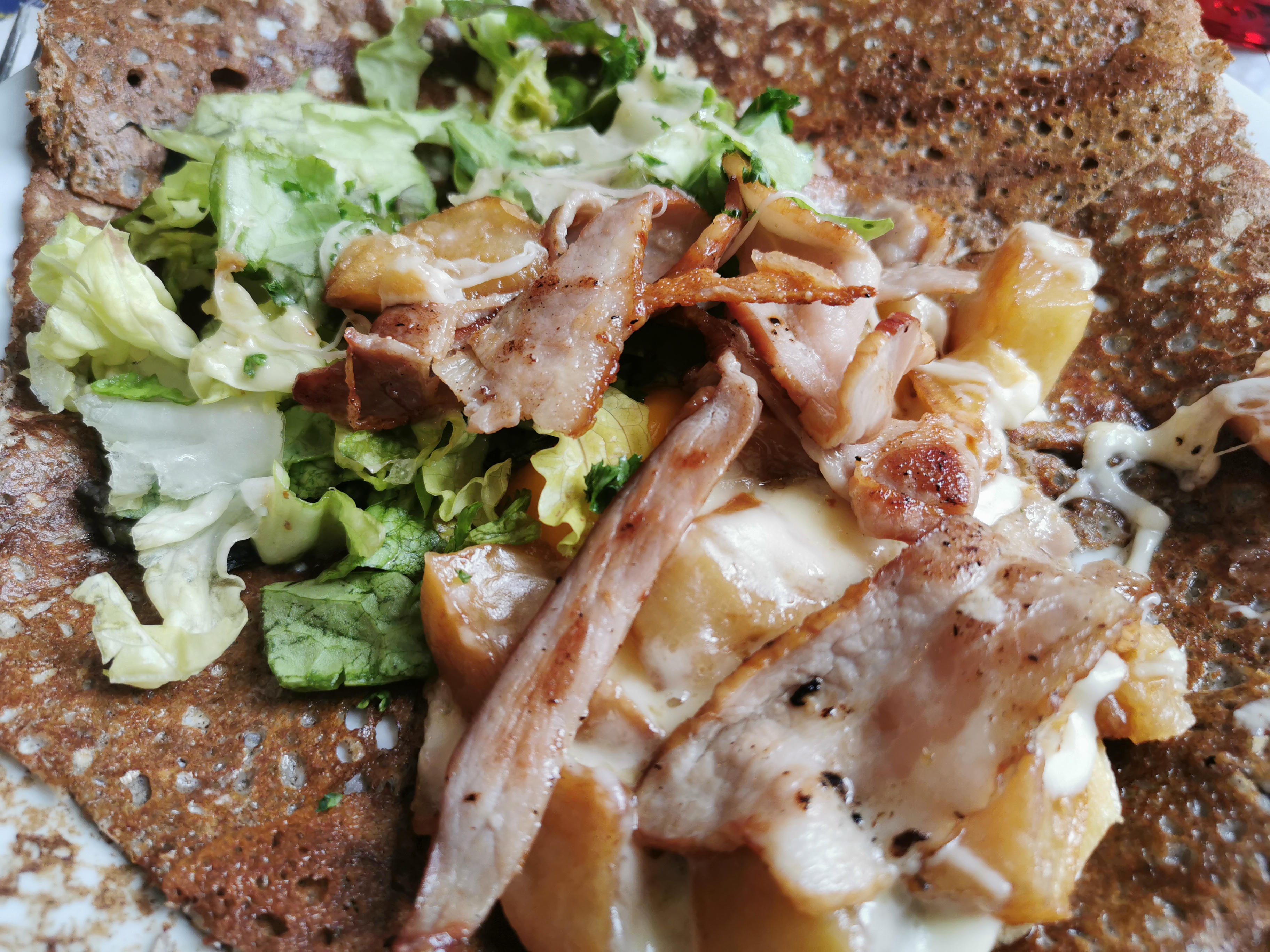 Réservation recommandée. Je suis d'habitude réfractaire aux pommes de terre dans les préparations... Elles étaient fondantes et vraiment bonnes dans ma galette! Bon accueil, on sent les sourires derrière les masques et les gestes barrières appliqués. Point négatif plusieurs serveurs sur la même table mais tous agréable (c'était peut-être plats chauds desserts etc)