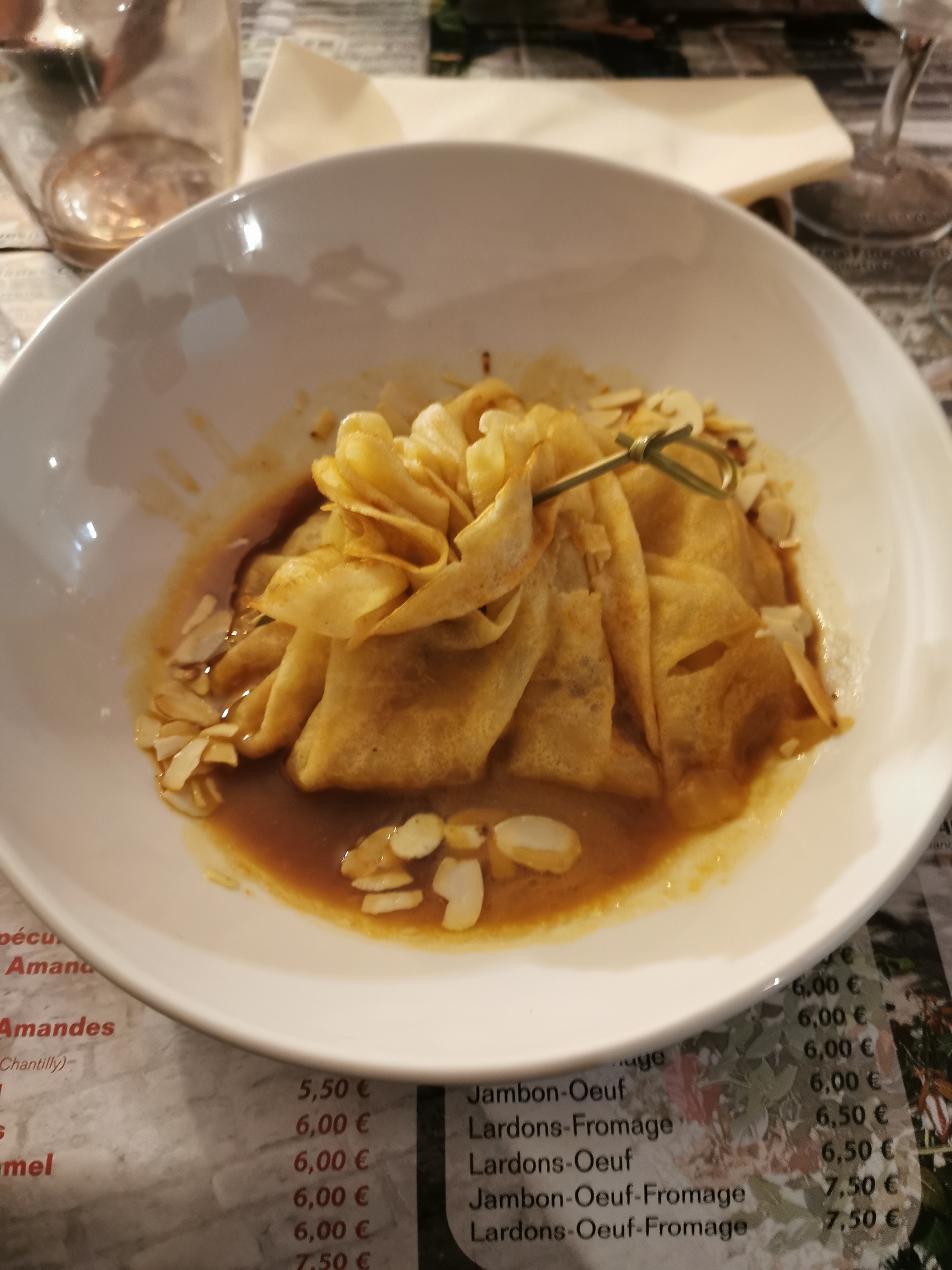 Premier passage à 20h complet ont nous à proposer toute fois de revenir à 21h. Notre attente à étais récompensé car le personnel est chaleureux, la jeune serveuse souriante et la cuisine rapide et bon. Qualité prix raisonnable, parking pas très loin. Lieux décontracté, et table espacées. Photo crêpe suzette flambée 8,50€. Recommande