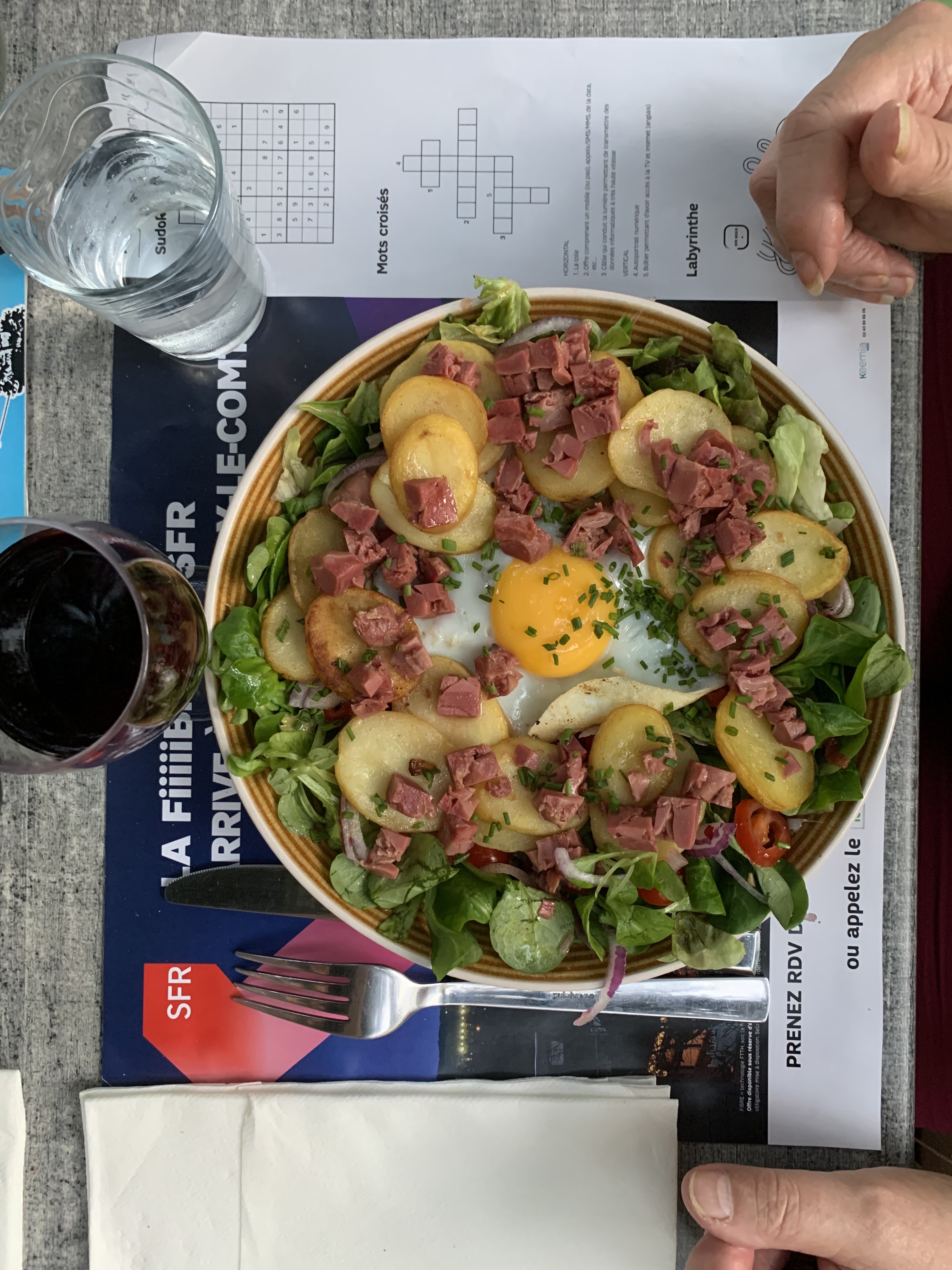 Très bonnes salades même si les oeufs miroirs était durs 😁 Patron et serveuse sympathiques. Super jardin calme a l'arrière . .a faire..