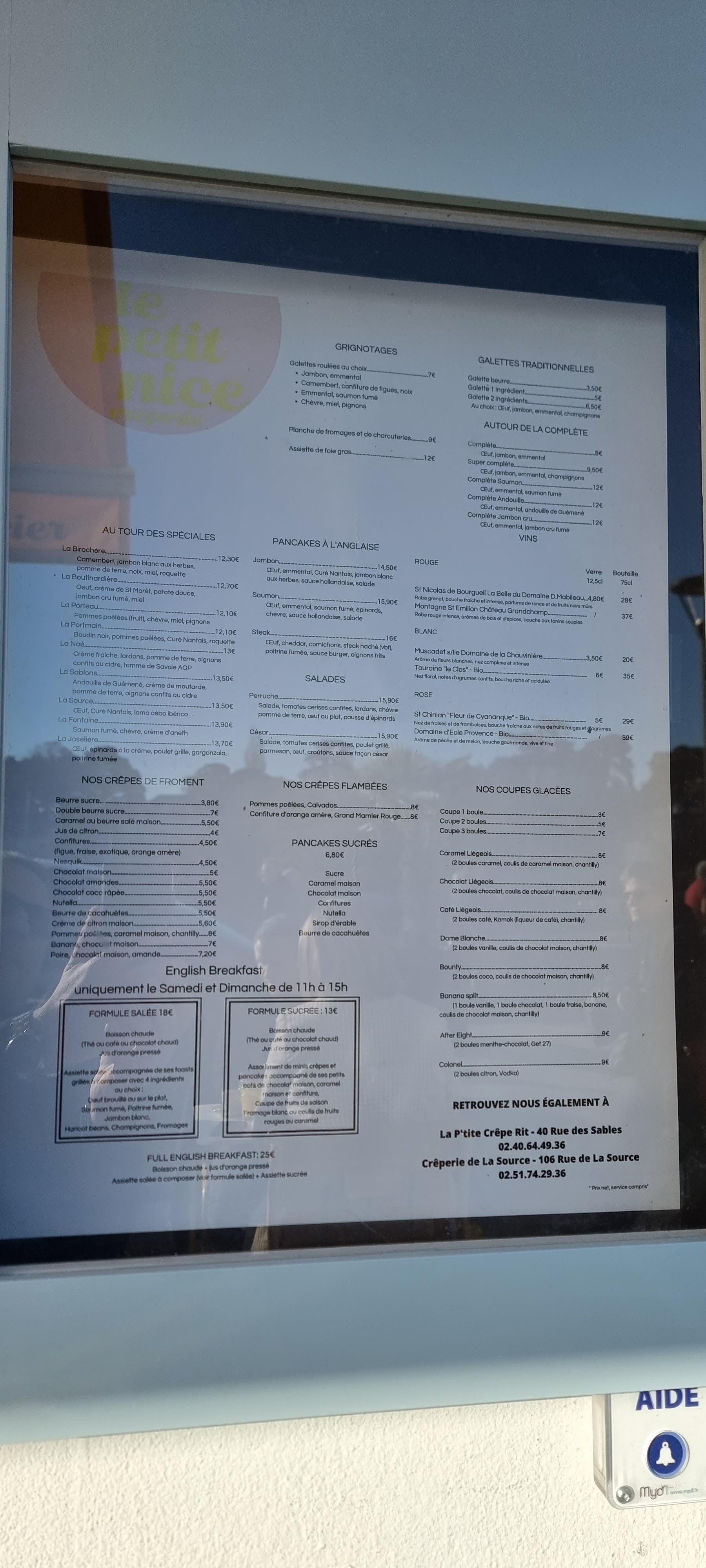 Le p'tit Nice Un délice ! Crêpes aux amandes grillées, De la gourmandise à grappiller. Au saumon tu crêperas, Et c'est doux et tu apprécieras. Par temps de soleil ou de pluie, Le cidre venu d'ici te fait de l'oeil alors vas-y.