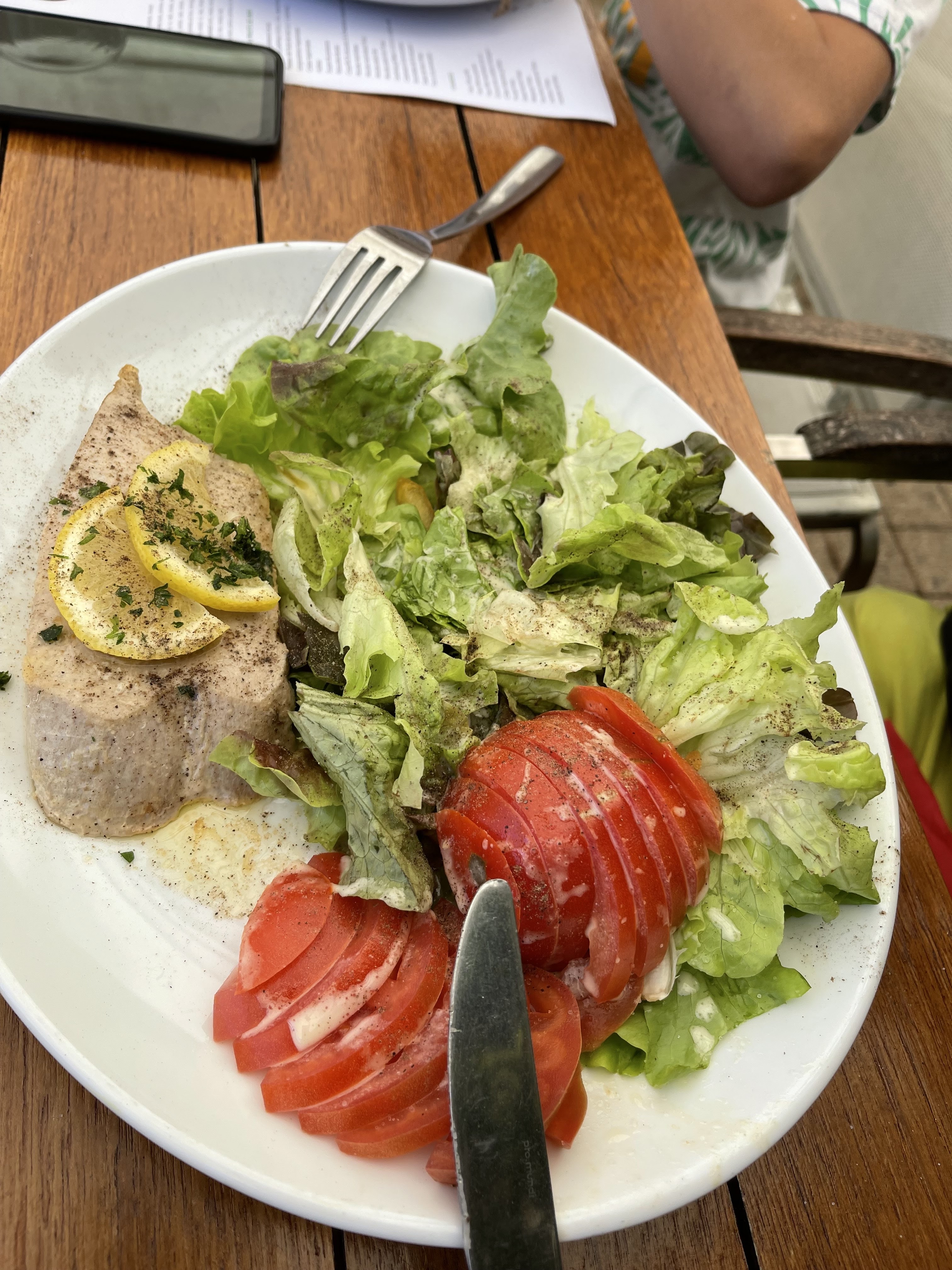 Un déjeuner à l'ombre du parasol dans le jardin: exquis! Les plats sont variés et délicieux. Le service efficace et sympathique. Un dimanche de Pentecôte avec beaucoup de monde mais une ambiance très agréable. Nous recommandons vivement !