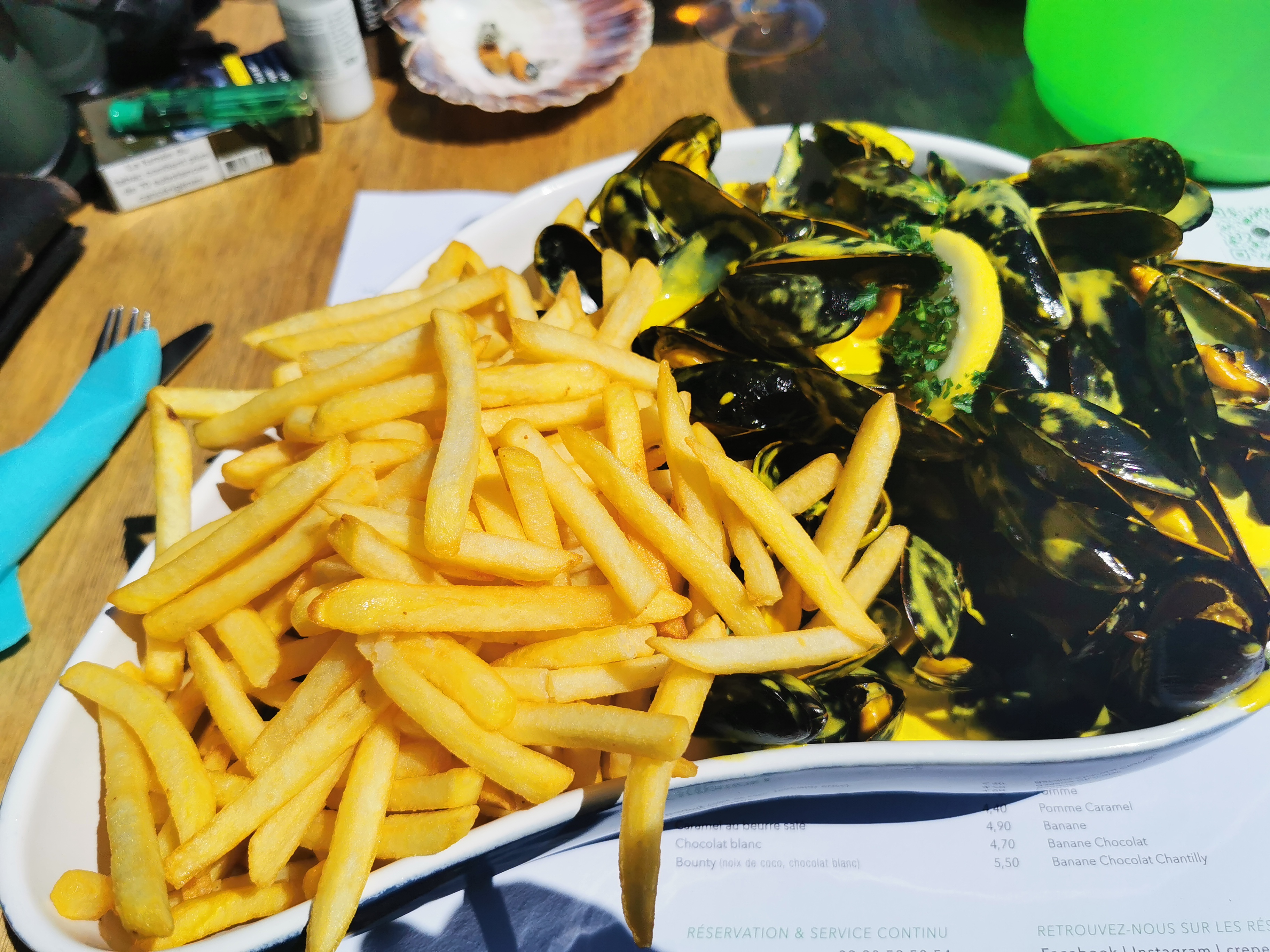 Notre choix c’est porté vers ce restaurant aux vus des avis positifs et ce fut une déception. Les moules soleil d’or sont certes une bonne recette, par contre leurs tailles en pleine fin de mois de juin laisse à désirer, mieux vaudrait privilégier la qualité à la quantité! Quant aux frites surgelées sans intérêt, bref il y a mieux ailleurs et pour moins chère.