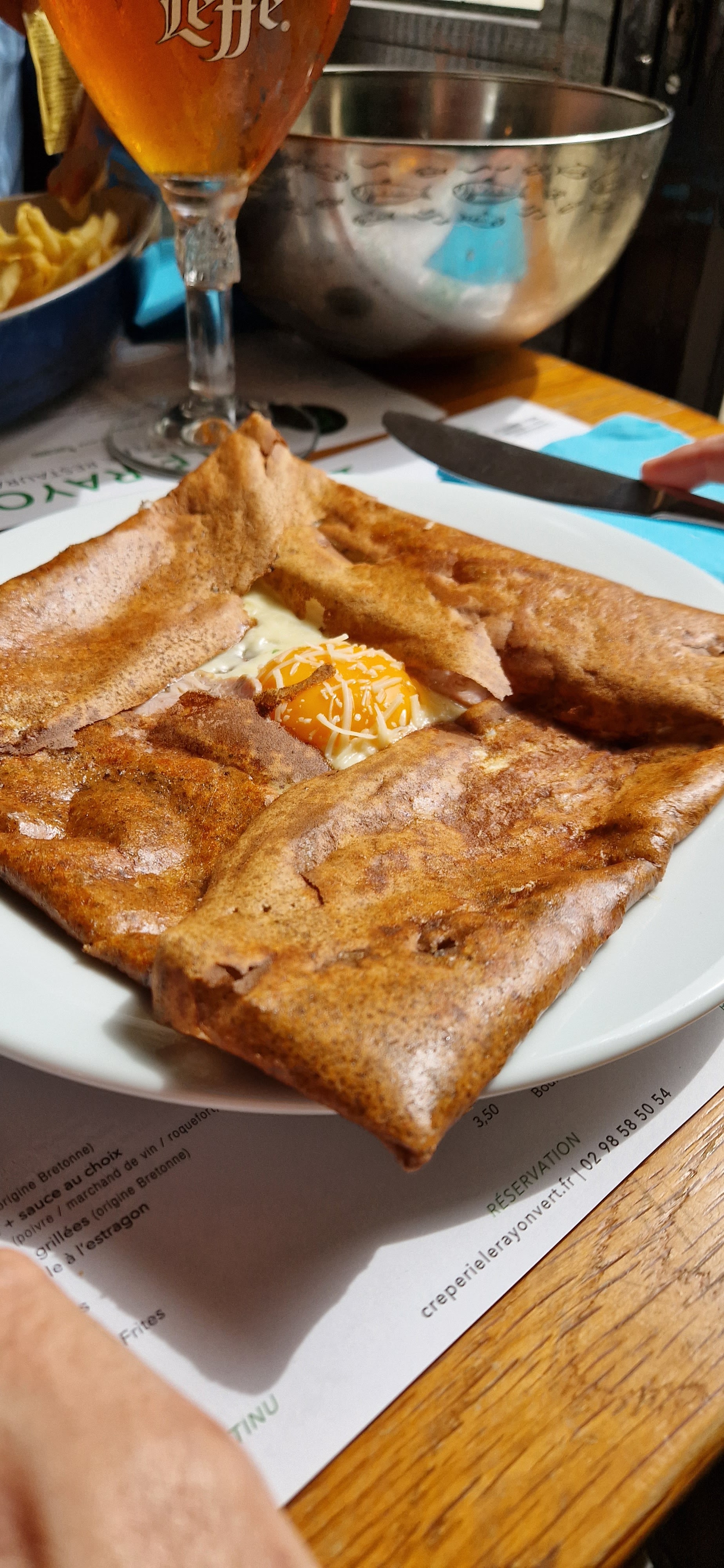 Réservé par internet, très bon accueil, une équipe jeune et Dynamique, très bons produits , beaucoup locaux, très bien cuisinés, service, rapport qualité prix très bien. Nous recommandons cette crêperie restaurant.