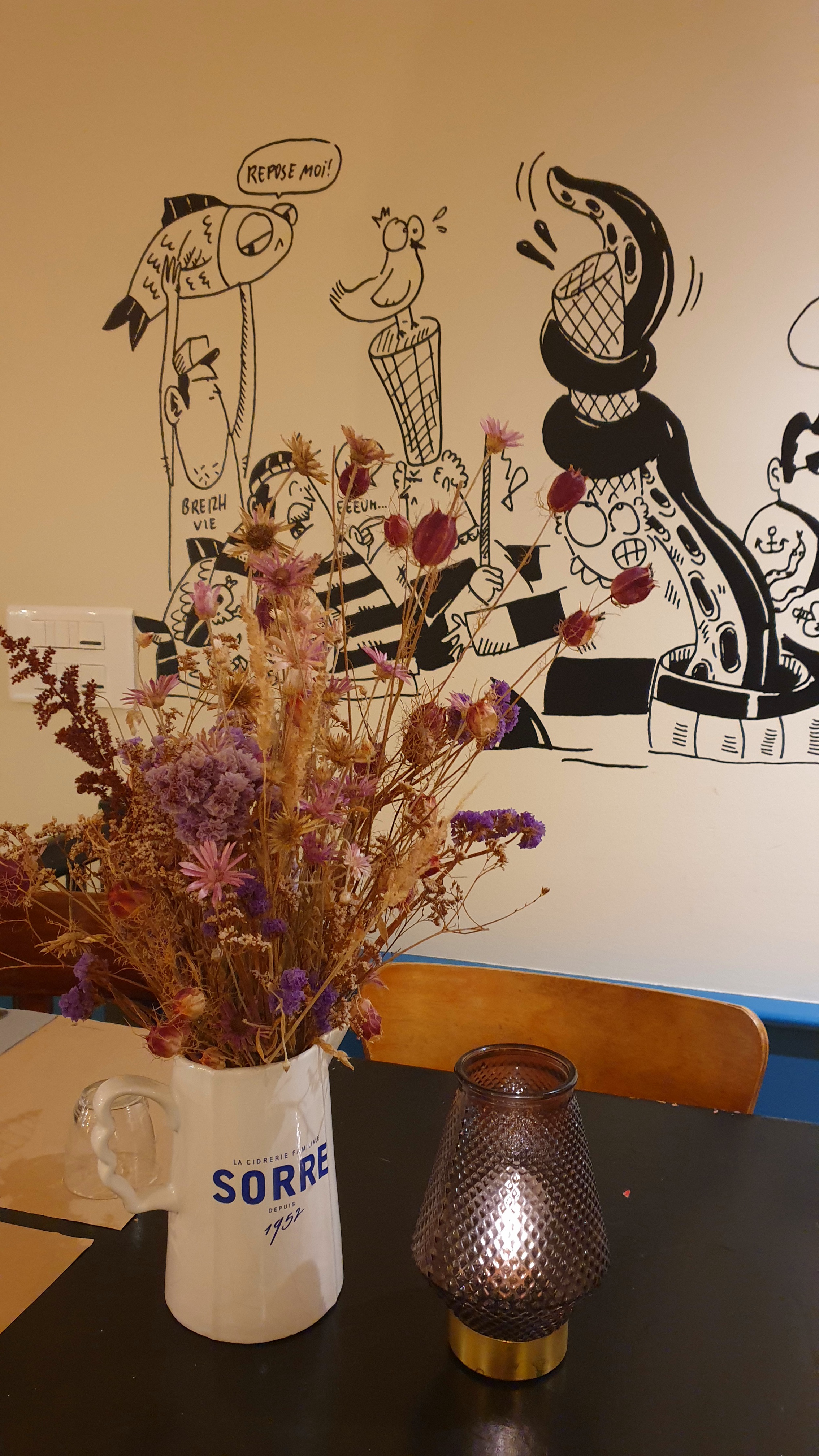 Simple et accueillant. Complet mais ils ont eu la gentillesse de nous trouver une petite place. Côté assiette, un burger à la sauce Breitzh ça peut paraître risqué : risquez! Cest très bon et sans prétention.
