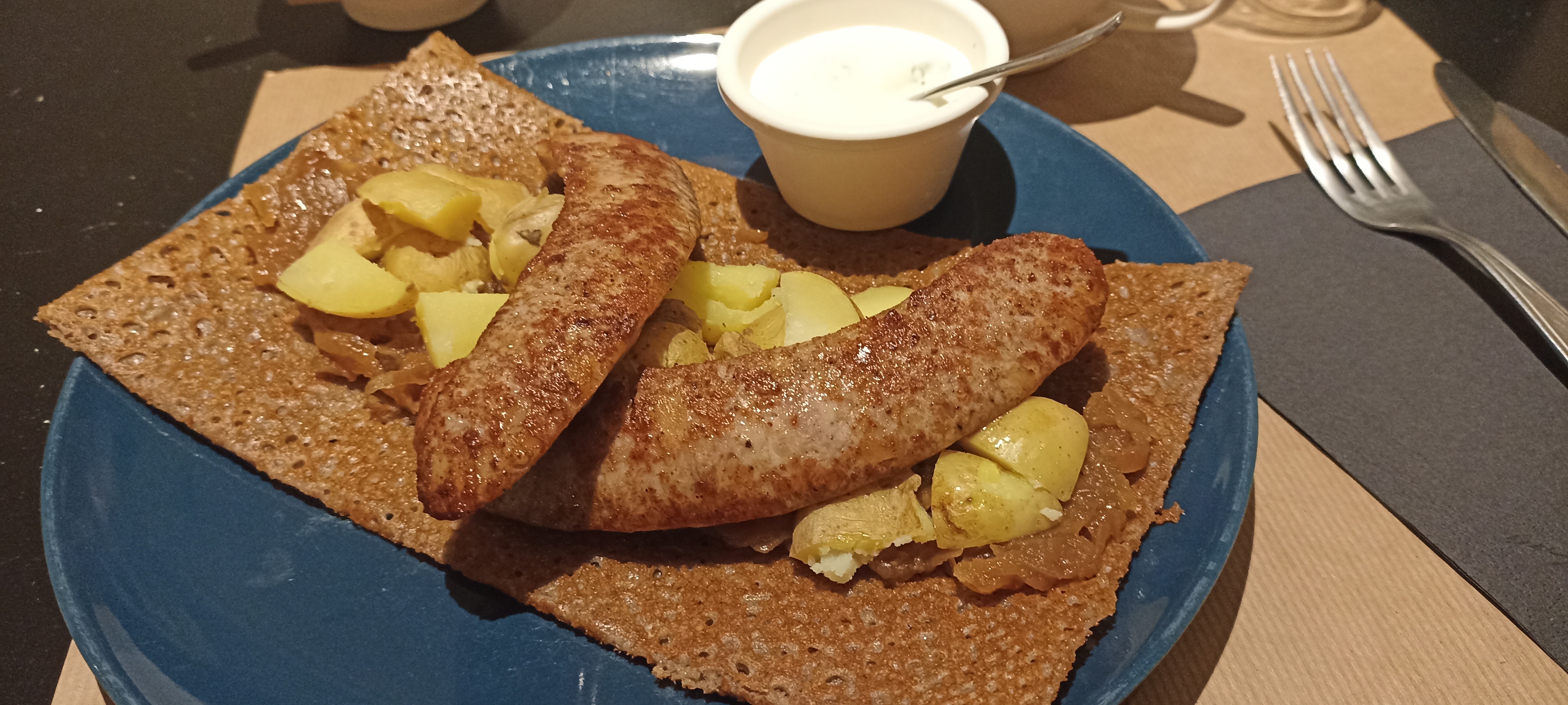 Ambiance et service très sympa et en plus je me suis régalée avec des frites maison et une galette bien croustillante. Plus de place pour le dessert mais ce que j'ai vu passer avait l'air très bon !
