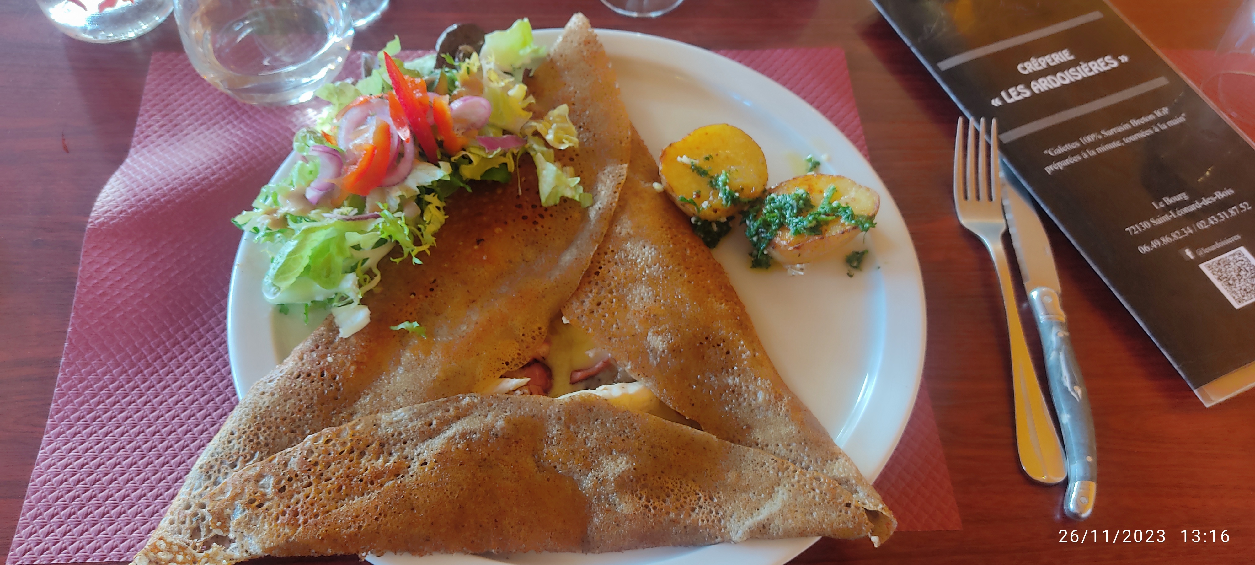 De passage a St Léonard des bois avec une amie , ce jour , nous avions réservé le midi dans la crêperie , les Ardoisières un bon accueil ,serveuse toute mimi et discrète ,quand aux galettes et crêpes ,un pur délice et généreuses!!! Je recommande cette crêperie ...nous y reviendrons .. la région est tellement belle et ce village idyllique ...