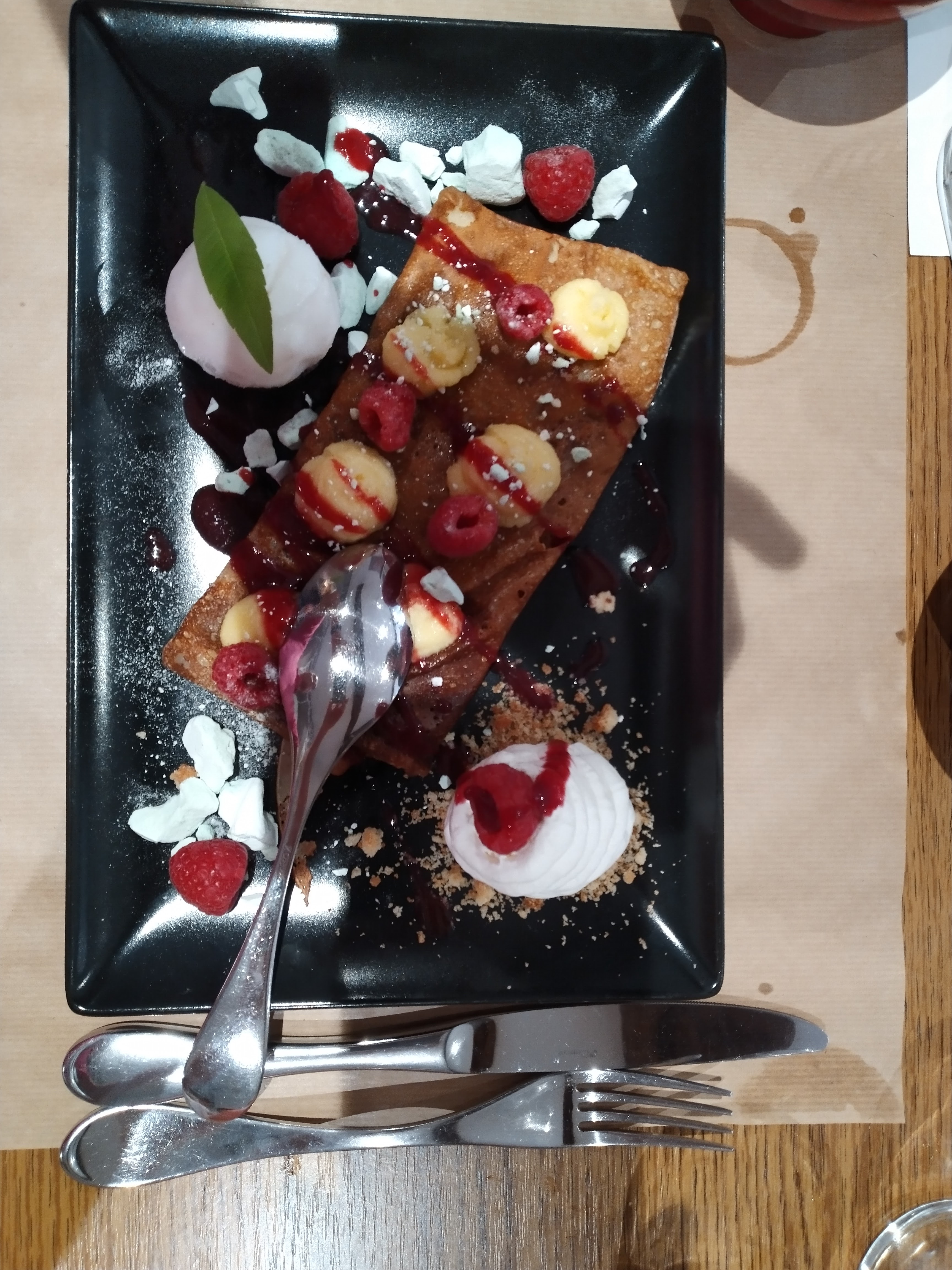 De très bonnes crêpes, original et belle présentation. Bon accueil, service rapide, jolie endroit et convivial. Je recommande 👍