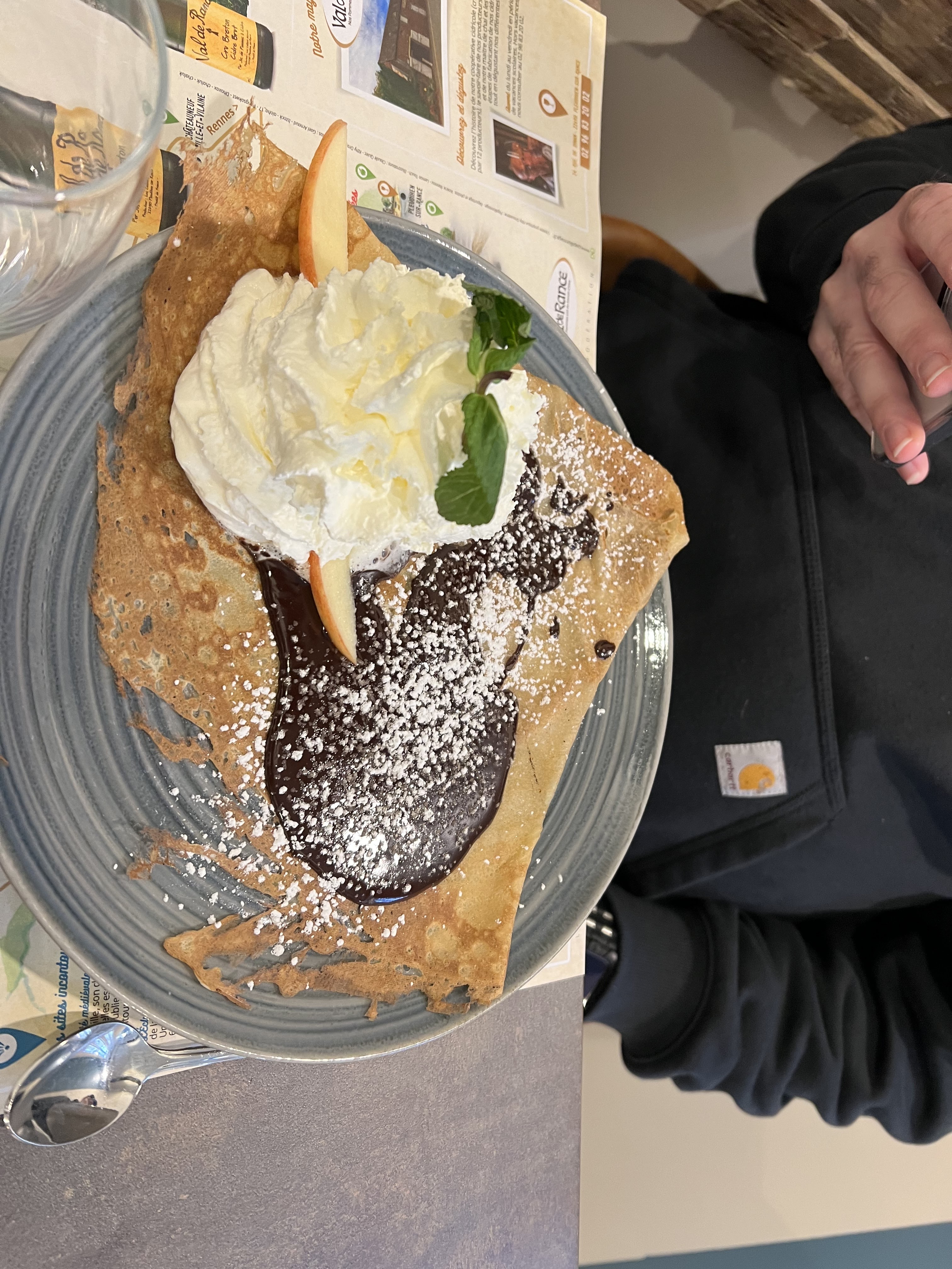 Excellente crêpes. Vraiment fondante et avec le chocolat c'est un délice. Accueil vraiment sympa et cela fait du bien après la visite du château dans un froid et une humidité glaçante.
