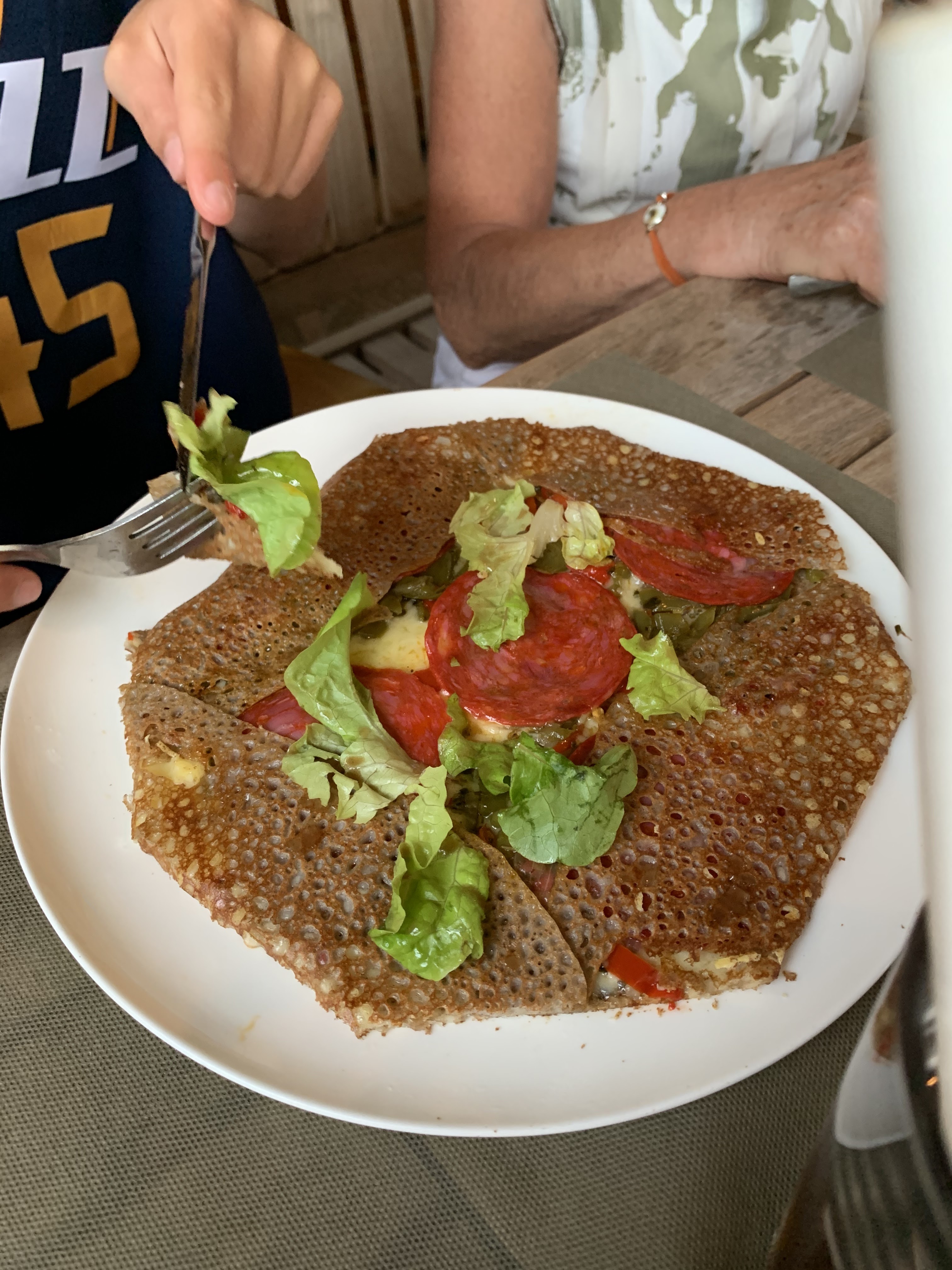 Déjeuner très agréable au seins de ce restaurant . Carte variée : crêpes salées , salades , crêpes sucrées ou glaces . Nous étions 4 adultes et 2 enfants et chacun y a trouvé son bonheur , pour le plus grand régal de nos papilles . Le service était parfait , avec une pointe d’humour ce qui était appréciable . Bonne saison à toute l’équipe .