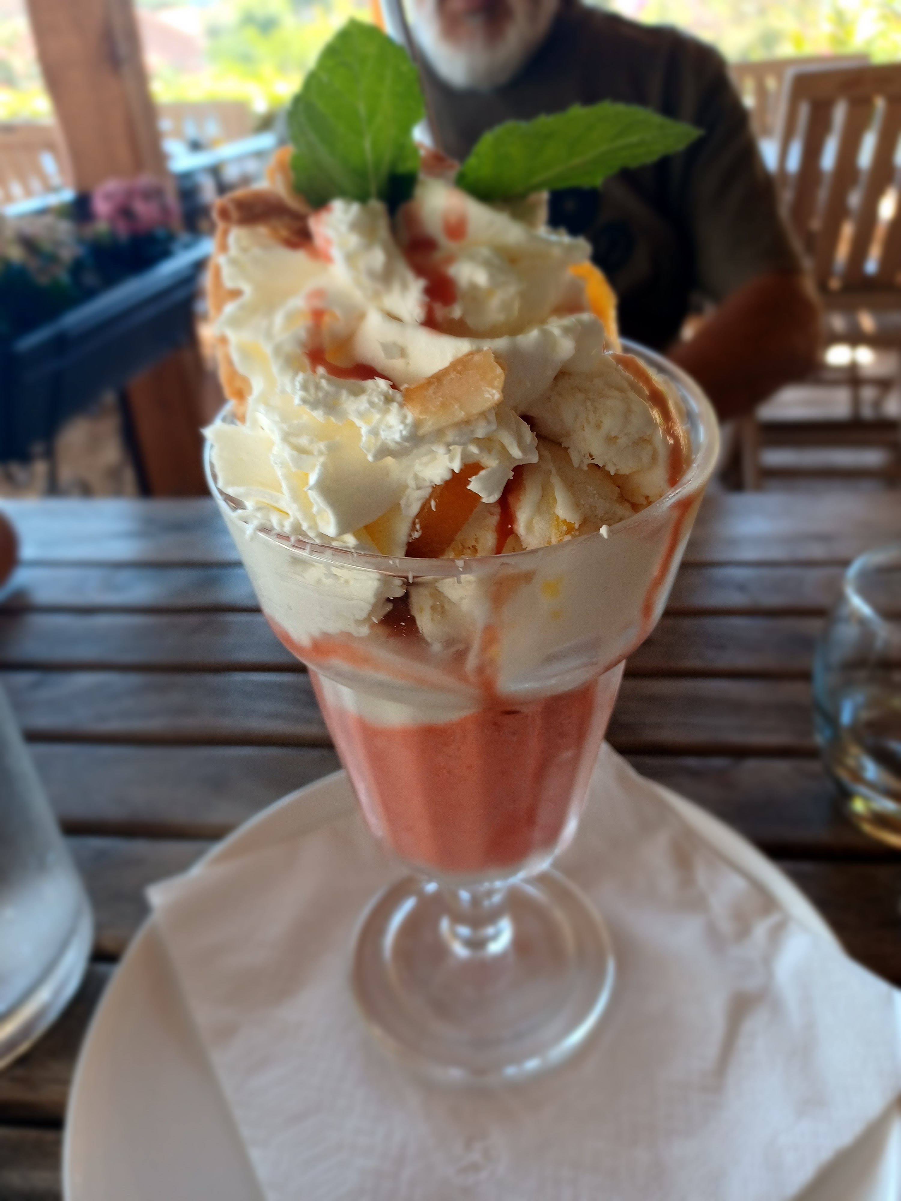 Je recommande vraiment ce restaurant ! Vue imprenable sur les deux églises de Cargese et sur la mer depuis deux belles terrasses ombragées et au calme. Les glaces ainsi que la chantilly sont excellentes !