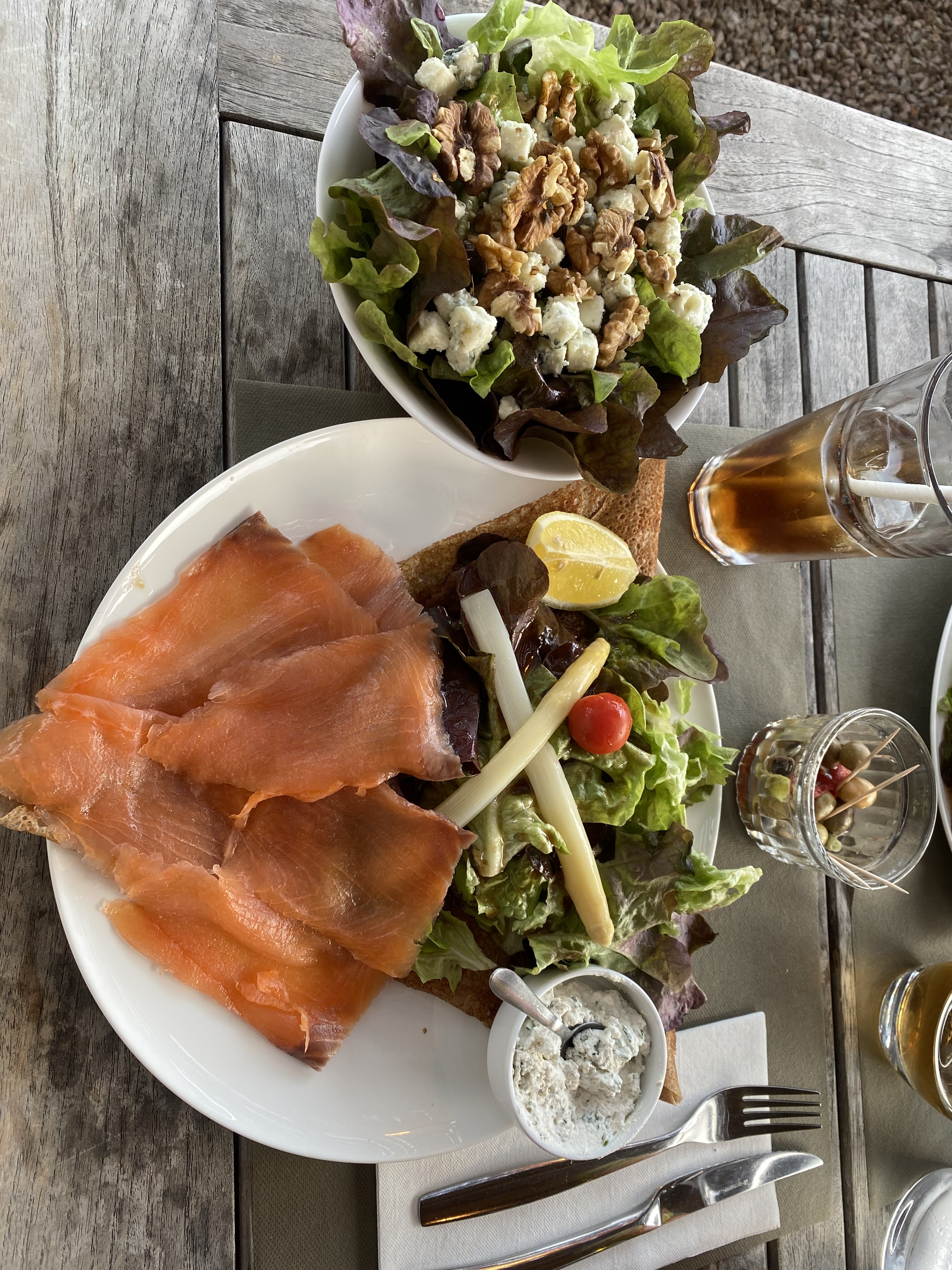 Bel endroit en allant balader vers les 2 églises. Superbe terrasse ombragée et serveurs très sympathiques. De très belles salades à la carte. Je recommande sans hésitation .