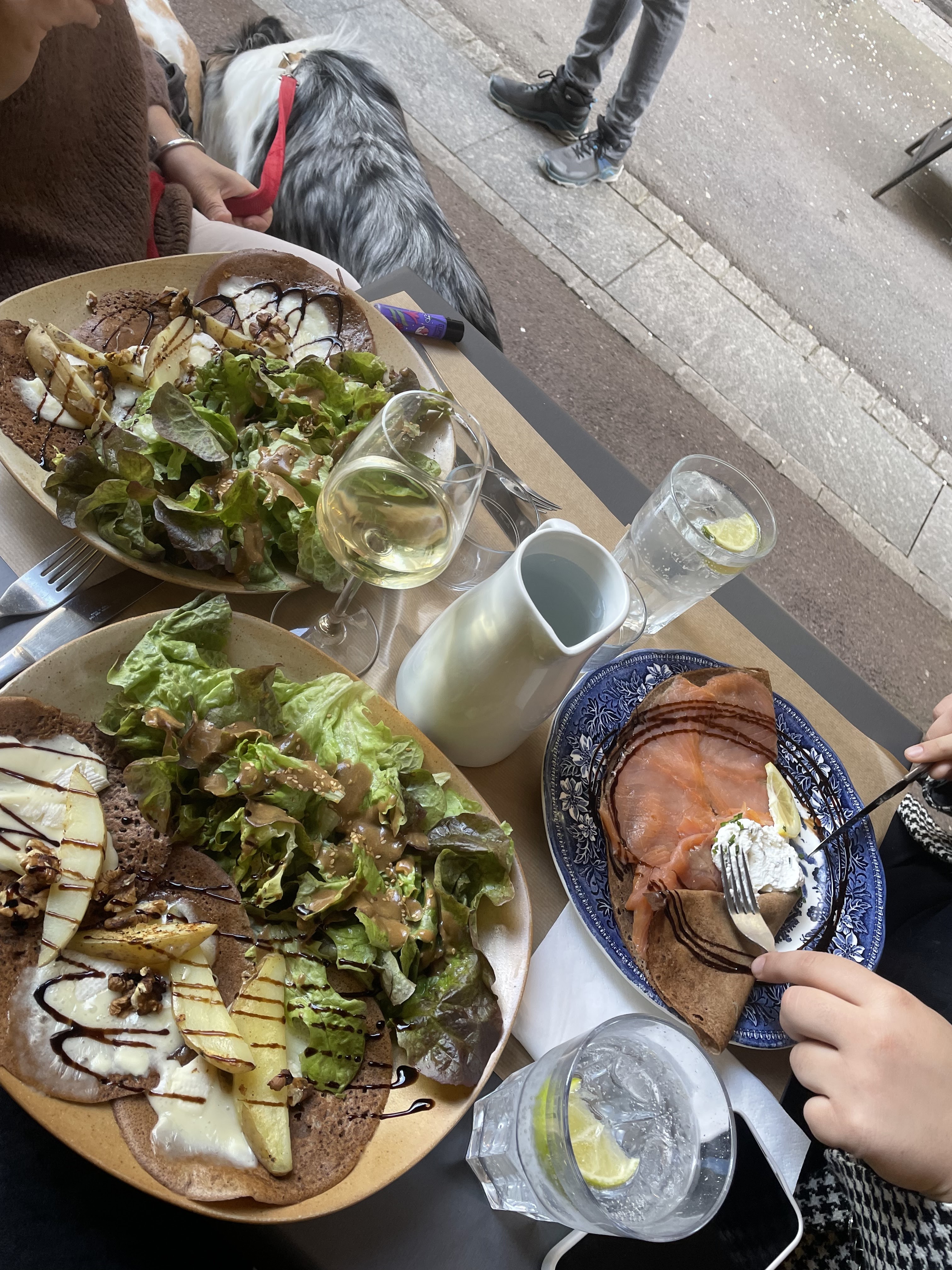Les crêpes (chocolat et chèvre chaude) sont bonnes. Le thé noir est excellent. Les tables sont trop proches les unes des autres.