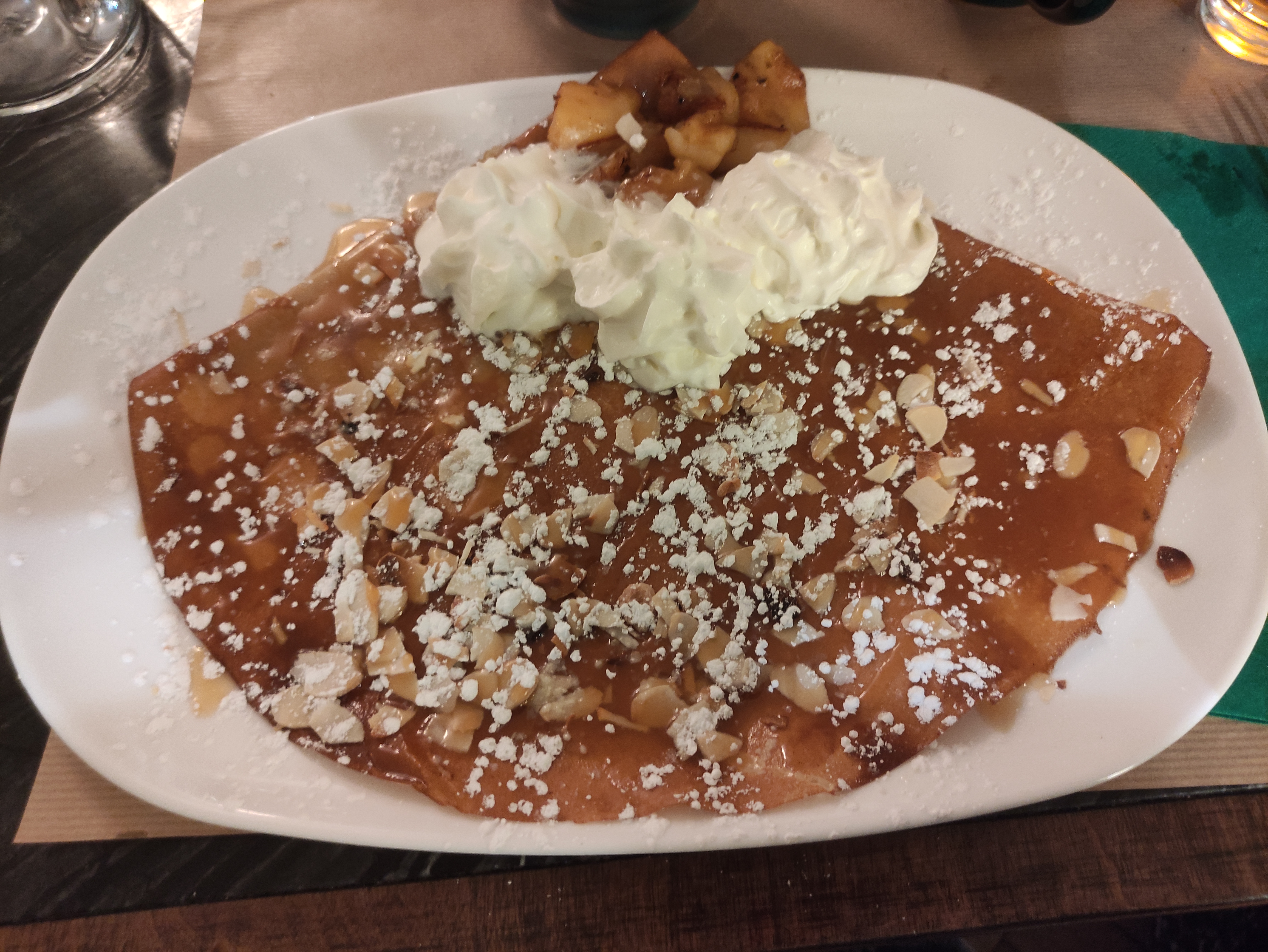 Excellentes crêpes avec des recettes revisitées et originales! Nous avons pris une crêpe aux saint Jacques et fondue de poireaux ainsi qu’une crêpe aux champignons toutes succulentes. Vous pourrez aussi y découvrir le cidre de Savoie (spoiler: il est aussi super bon)