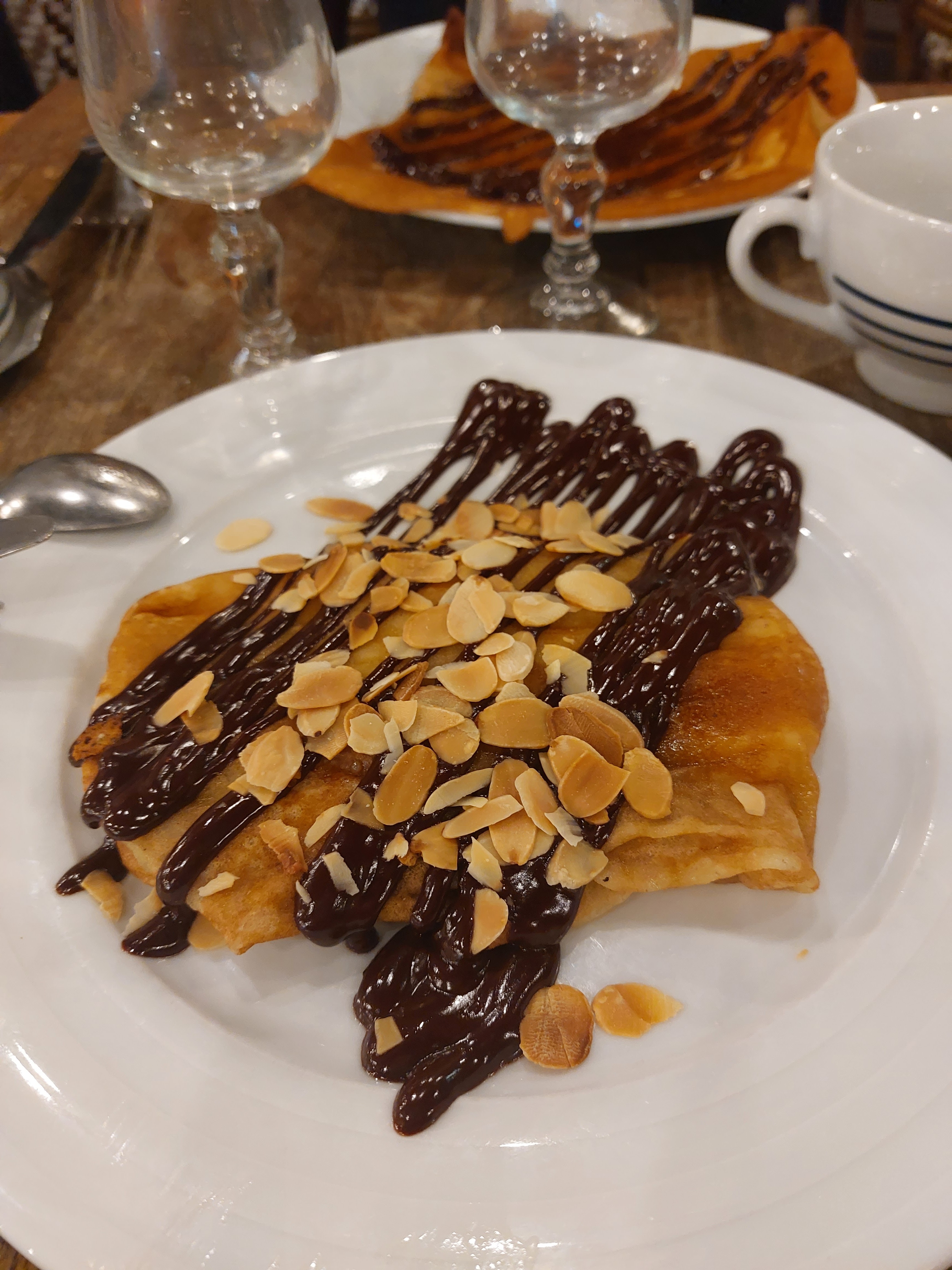 Vu l'extérieur, je pensais l'endroit plus agréable. Salle petite pour toutes ces tables d'où très bruyant. Service très long, 4 serveurs qui bougent beaucoup, pour rien car une seule personne fait les crêpes et on n' était pas en pleine saison. Dommage du coup, on a pas commandé d'autres crêpes ou desserts.