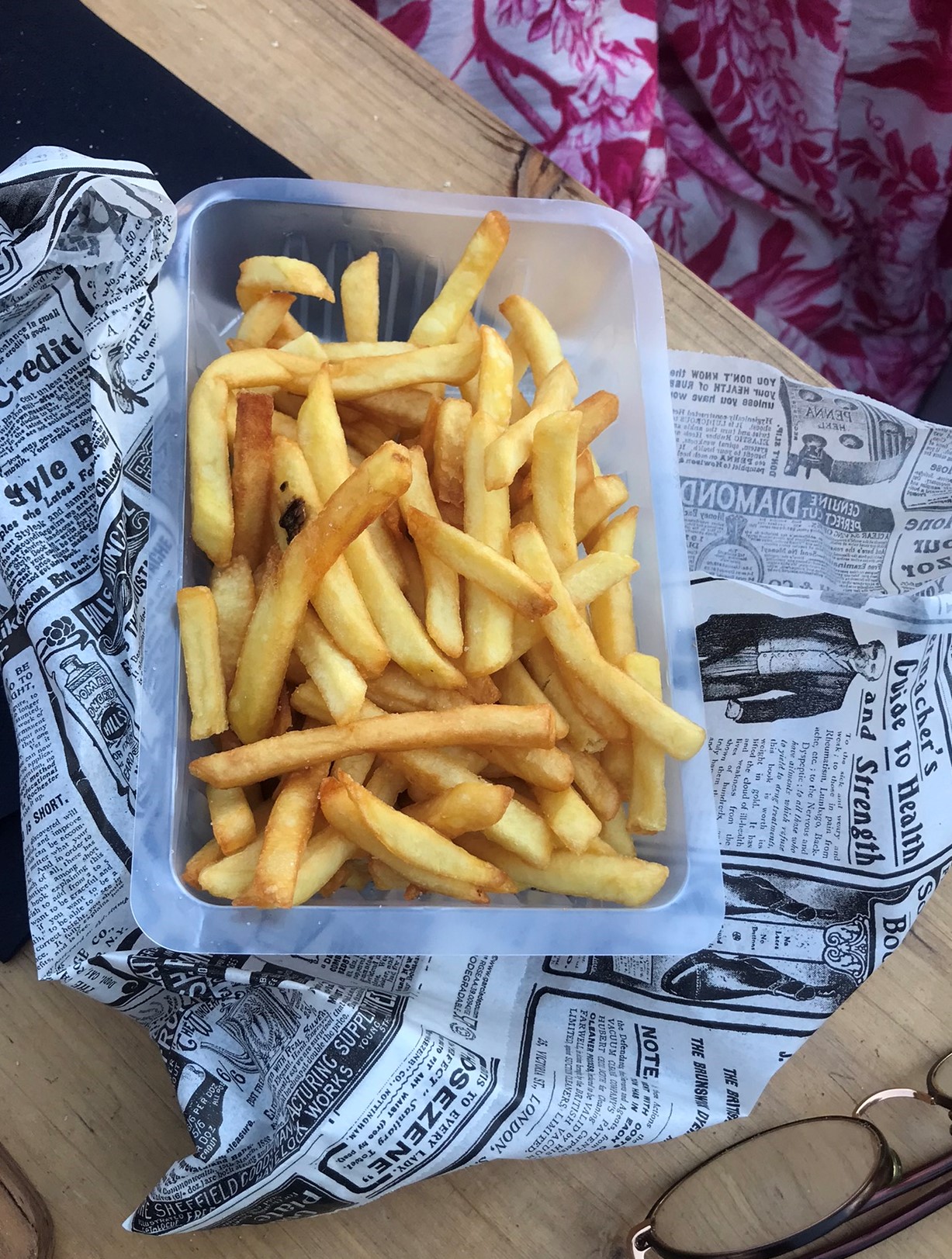 J'envoie mon fils acheter une barquette de frites, il revient avec une barquette de moyenne taille, ce sont des frites congelées, sans sauce et AU PRIX de 7€. Bientôt la gauffre à 10 € ?