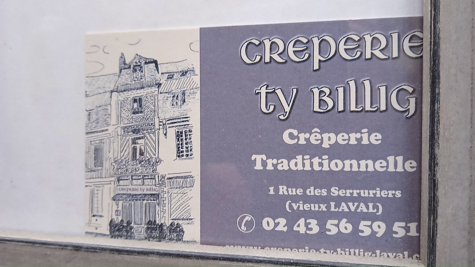 Direction la Bretagne !!! le Ty Billig, situé dans le centre historique de Laval, non loin du vieux château, vous proposera une belle carte pleines de bonnes choses à déguster !! l’accueil y est chaleureux, l’ambiance y est intime, on se sent comme à la maison ! pour ma part ; je recommande la galette aux champignons frais et beurre ailé ! juste DÉLICIEUX !! 😋 tout y est bon jusqu’au dessert ! je m’y suis régalé et y retournerai !! je recommande plutôt deux fois qu’une !! 😁😋