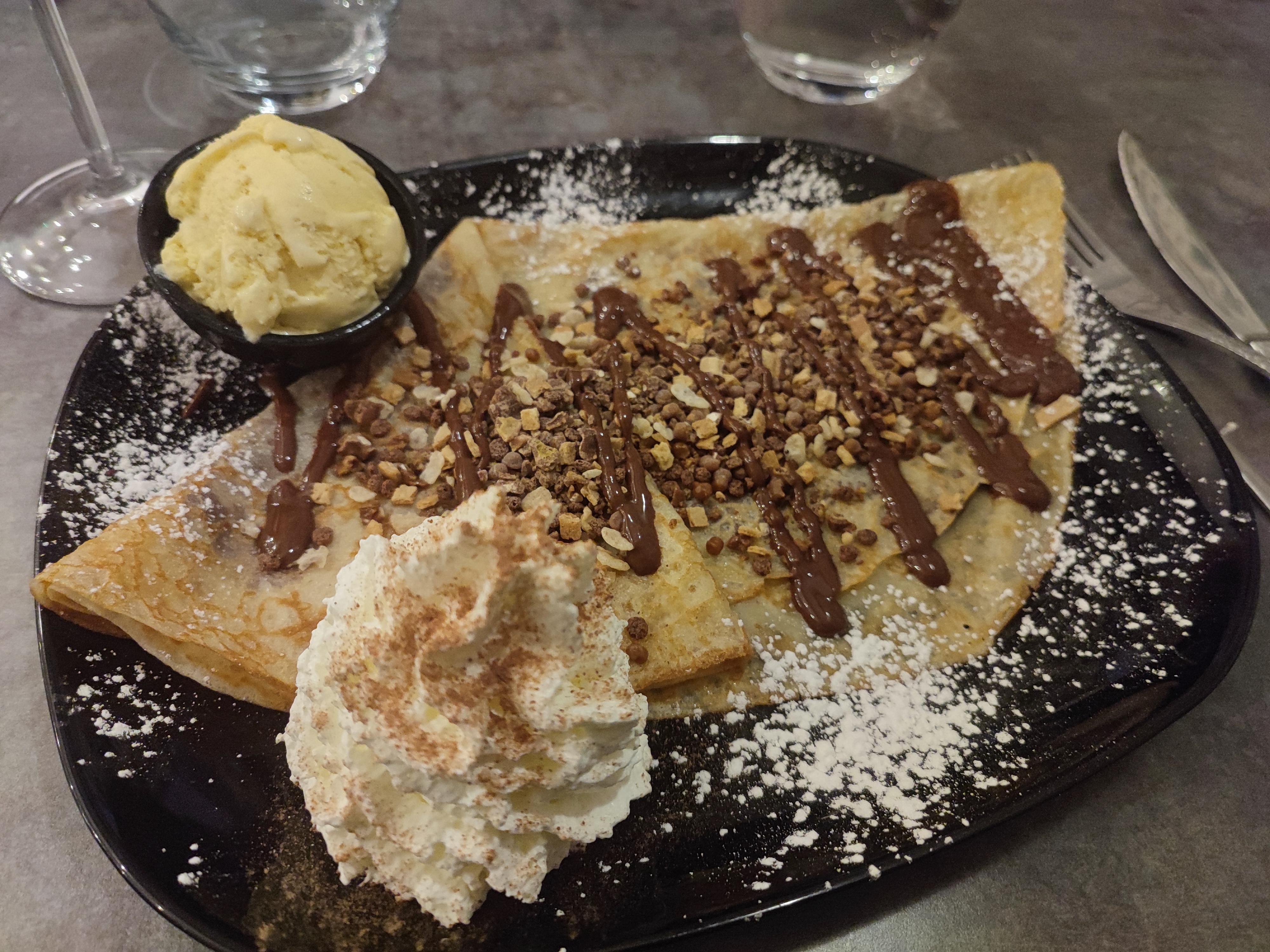 Super moment passé dans cette crêperie ! Énormément de choix avec des ingrédients peu communs et très originaux ( glace au roquefort ou encore glace à la moutarde) Et surtout un accueil exceptionnel !! Je recommande ce restaurant à 1000%