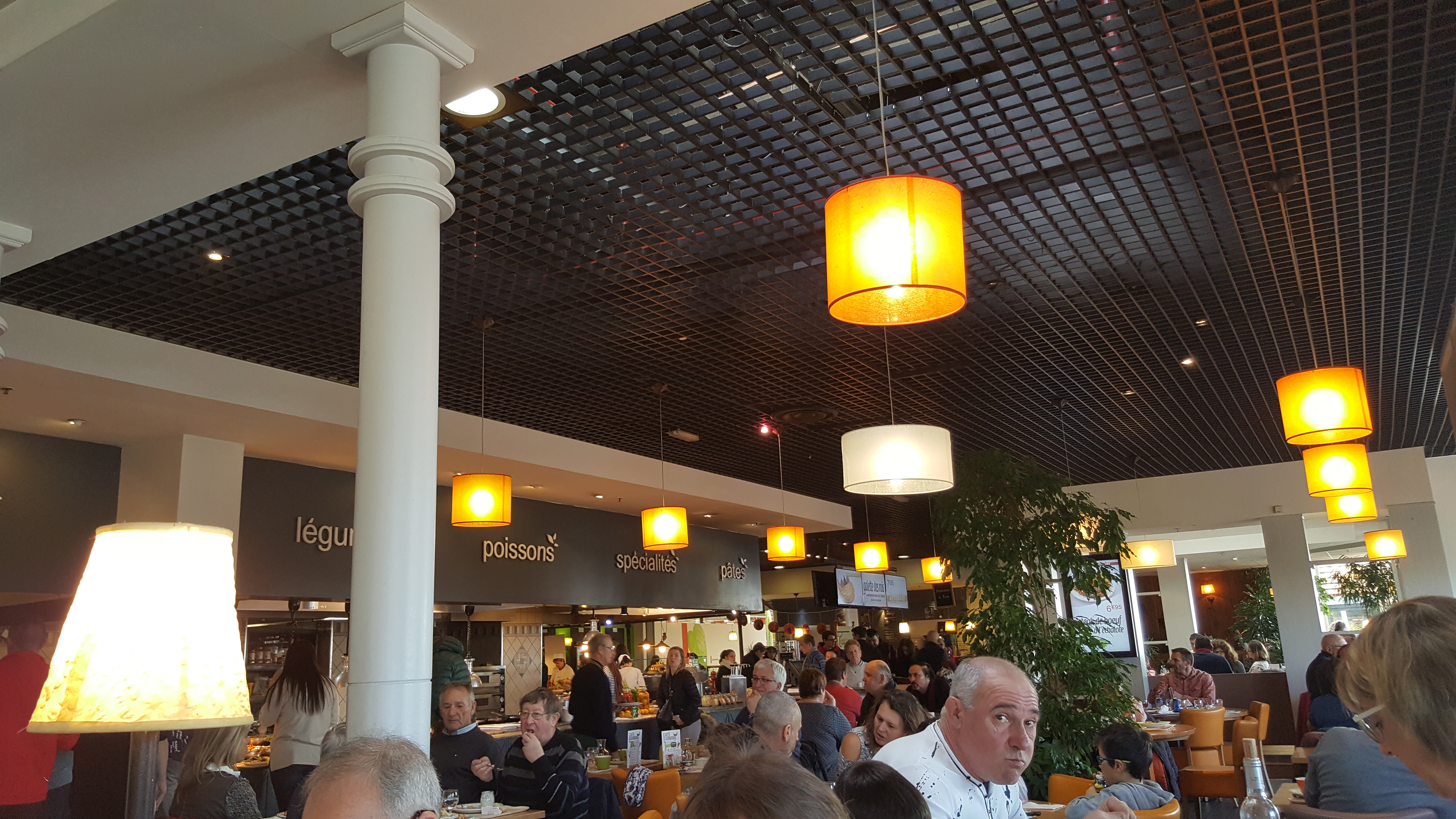 Nous avons mangé un dimanche, quelle déception !!! Tout d'abord il y avait au tableau des menus moules à volonté. A la caisse on nous dit que c'était le menu de l'été et qu'ils avaient oublié de le retirer du tableau. Ah! septembre est un mois d'hiver alors! J'ai pris tout de même un plat de pâtes. Comme le plat était tiède, pas de micro ondes, en panne' ils l'ont fait disparaitre. Comment ce fait-il qu'une cafétéria d'une grande enseigne soit aussi négligée. On ne reviendra plus.
