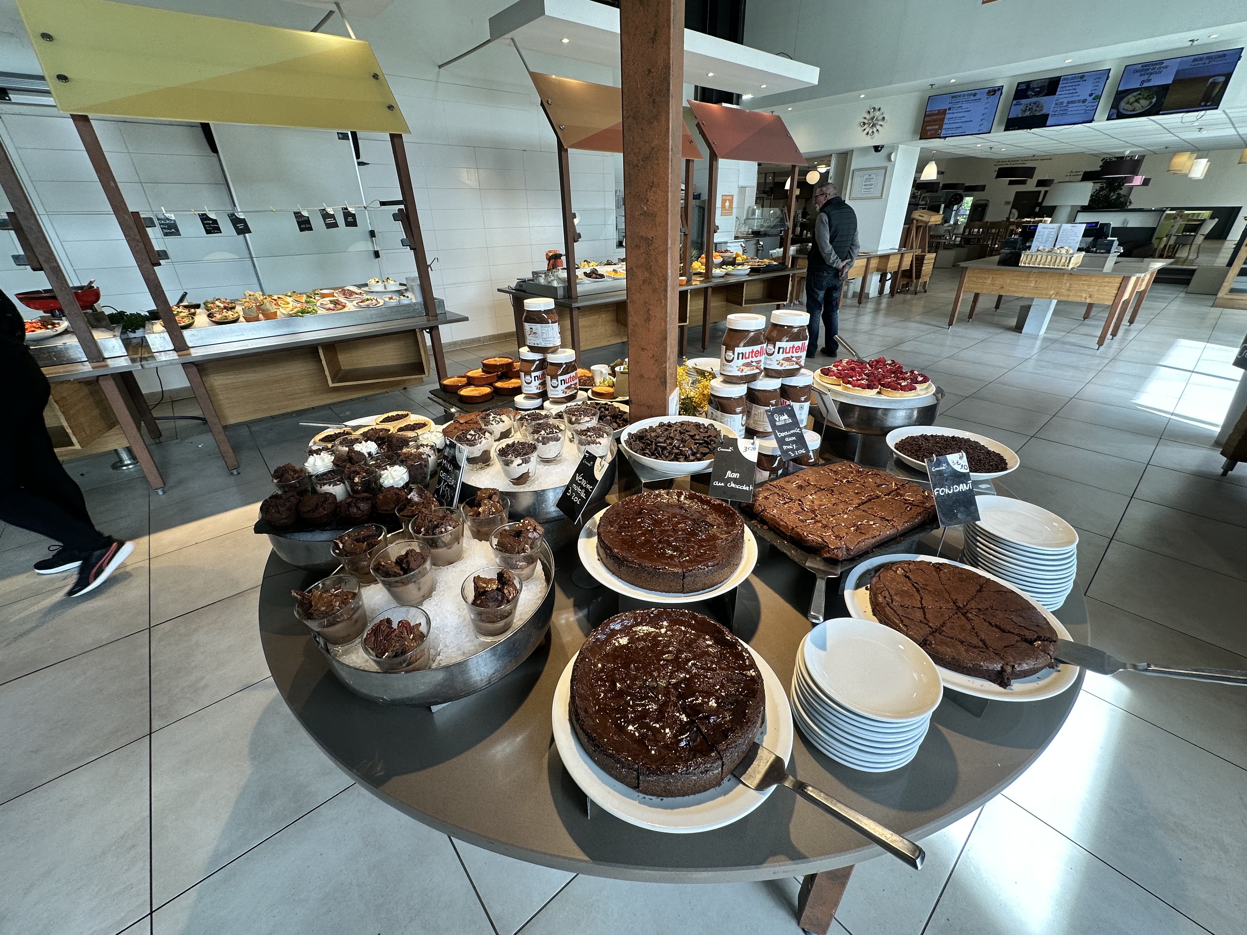 Une bonne cafétéria. Nous sommes venus dîner ce soir, arrivés un peu tard. Plus de pain à la caisse, ils ont été dévalisés. La salle est bondée, et on a l'impression qu'ils ont travaillé à flux tendu depuis plusieurs heures. Ce que j'ai vu : des hôtesses qui ont gardé le sourire malgré la multitude de tâches à gérer (encaissement-crêpes-plateaux en salle) ; une cuisinière qui a réussi à sortir en continu des plats de frites et d'accompagnements tout en cuisant parfaitement nos deux bavettes ; et un manager qui a aidé partout (salle, nettoyage, plateaux, cuisine). Et un rangement/nettoyage en continu des plans de travail et de la salle. En un mot : professionnalisme. Chapeau, et merci à l'équipe !