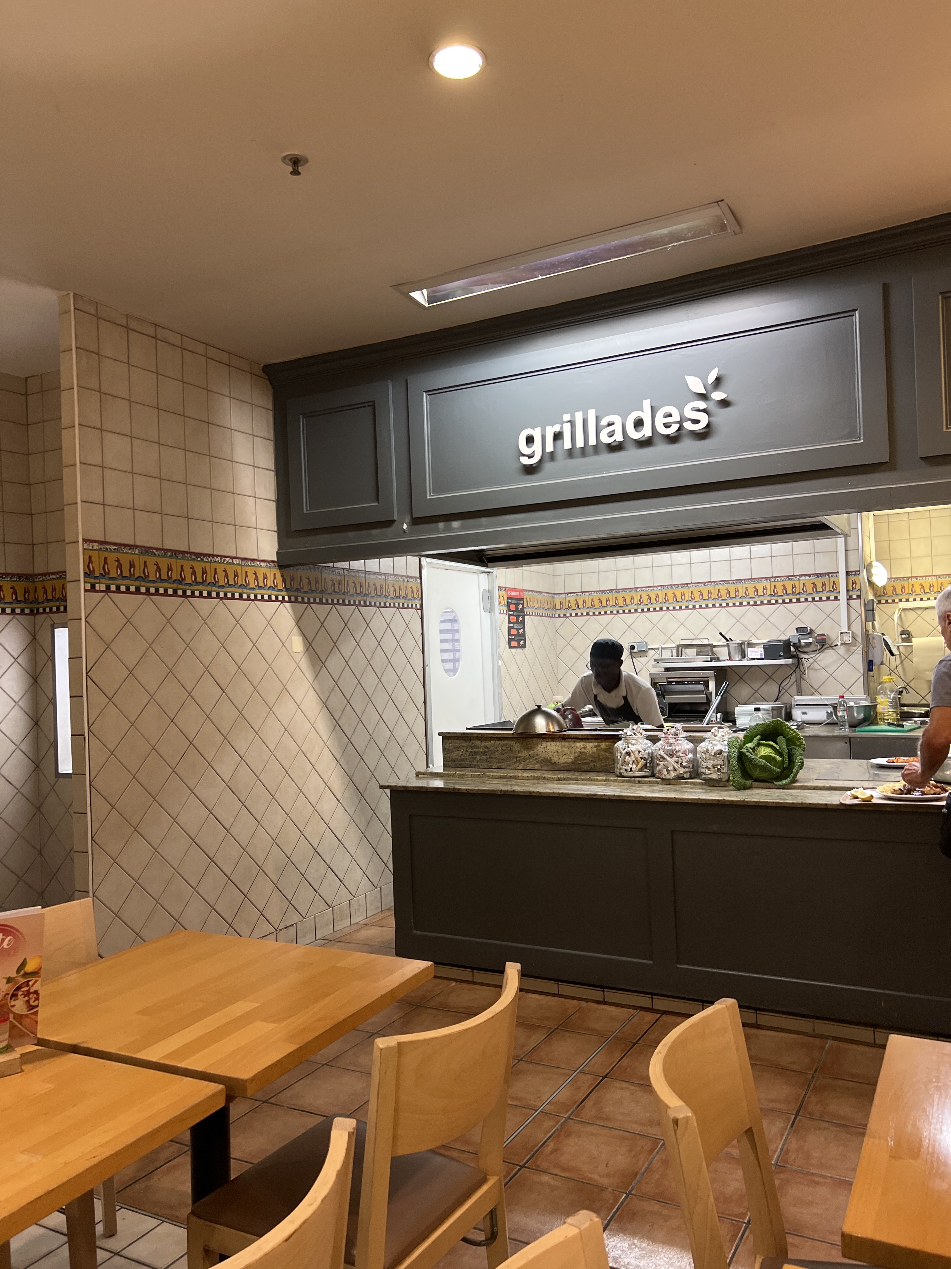 On mange pas trop mal. Bon rapport qualité/prix. C'est un self service. L'accès aux légumes est pas terrible. Il est entre les grillades et les autres plats. Personne ne sait trop comment le prendre, du coup c'est vas-y que j'te pousse.