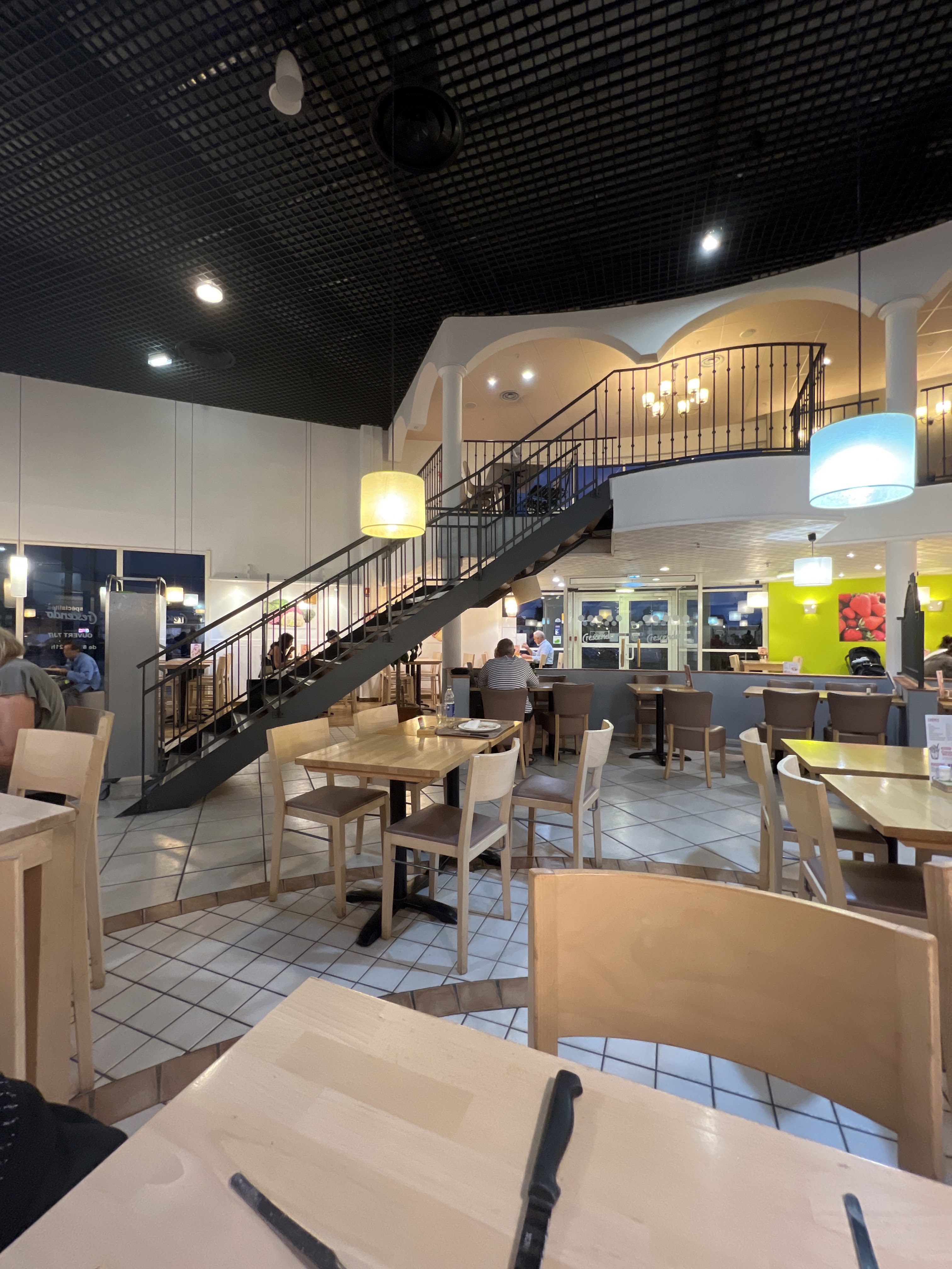 Pire qu’une cantine des années 80, cuisiniers dépassés, haricots très sec, viande et sauce au poivre très médiocre, quiche lorraine ultra salée et donc impossible à manger, calamars trop cuit et caoutchouteux. Il y a juste les œufs en entrée avec mayonnaise que j’ai pu avaler. J’y passais il y a plus de 10ans mais je ne me rappelle pas qu’à l’époque la nourriture était comme cela . Autant rester à la maison , profiter d’une tomate mozzarella avec filet d’huile d’olive…