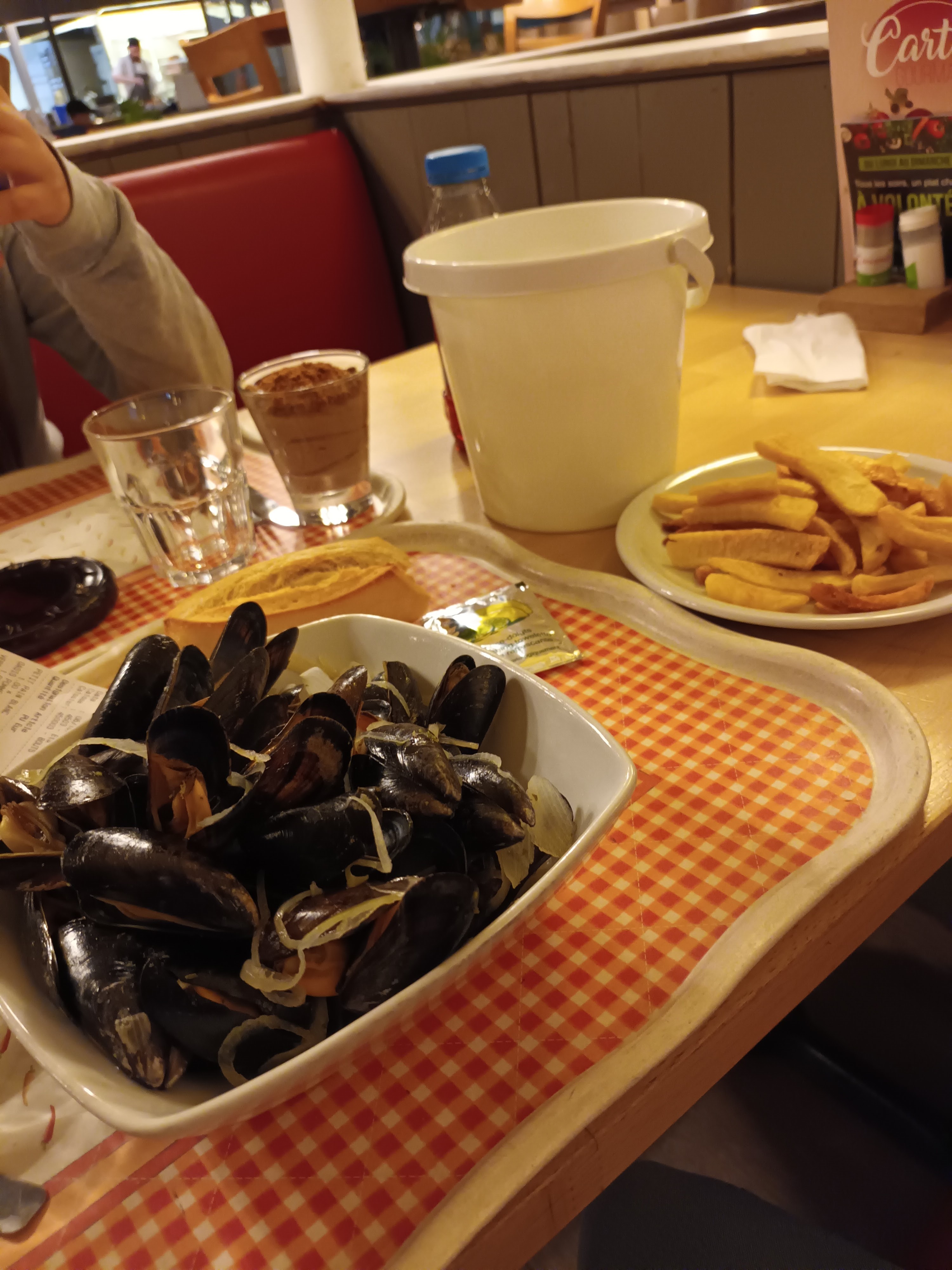Bien reçu et bien mangé Moules frites a volonté avec divers sauces rien a dire Le self est bien garni et beaucoup de choix Le personnel est sympa même pour un dimache Pas de reproche a faire